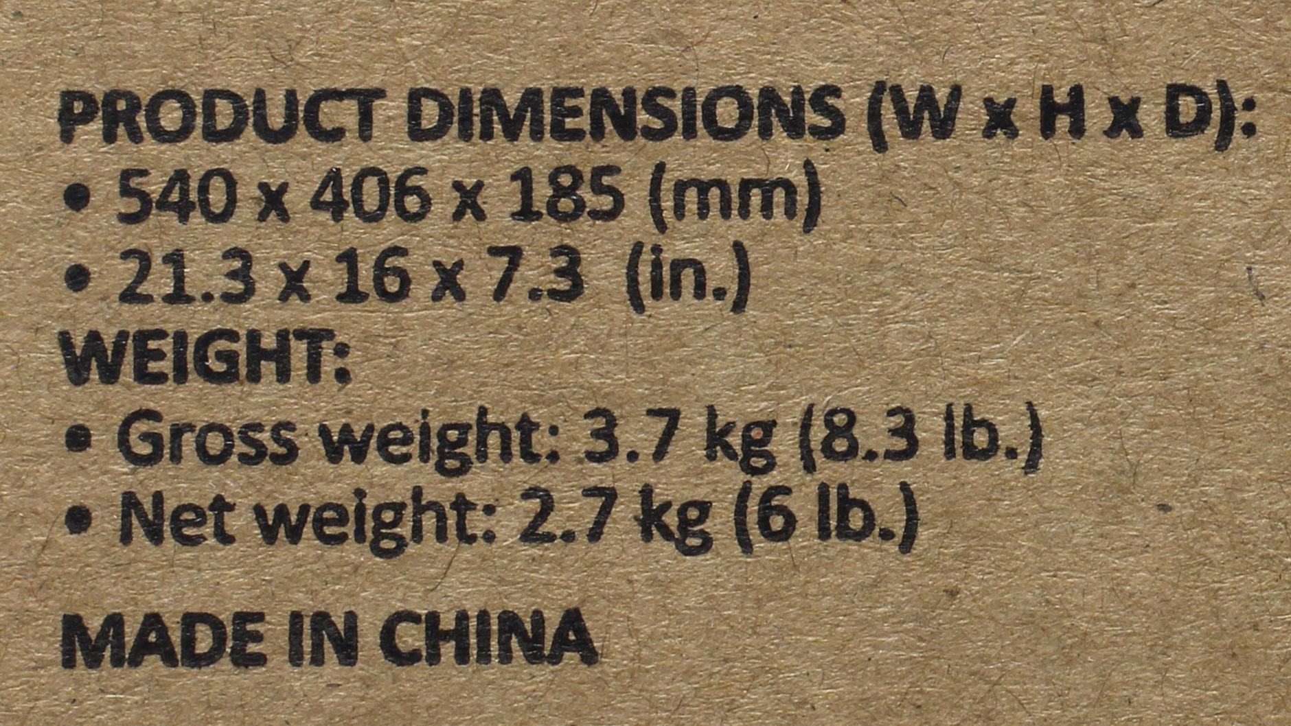 540 x 406 x 185 мм - с подставкой; 540 x 322 x 36 мм - без подставки