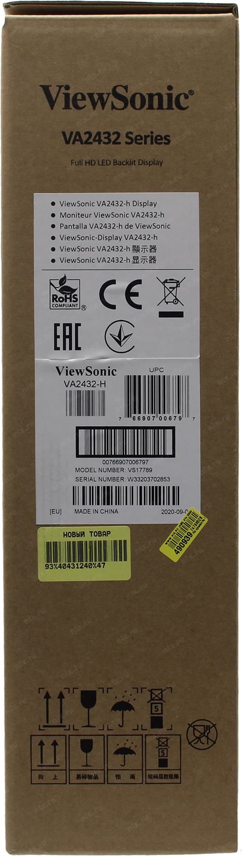 Монитор ViewSonic 23.8" VA2432-h черный IPS LED 16:9 HDMI матовая 250cd 178гр/178гр 1920x1080 D-Sub FHD 2.7кг <VS17789>