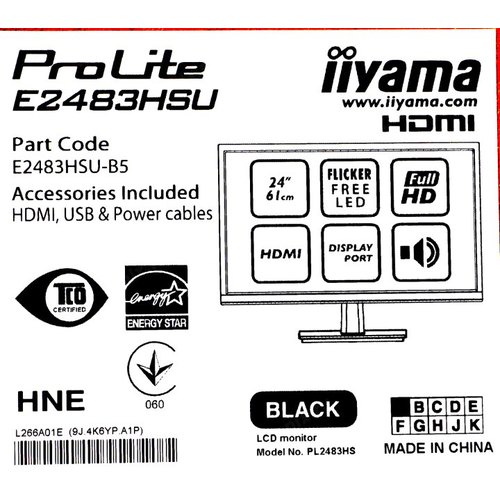 Монитор Iiyama 24" ProLite E2483HSU-B5 черный TN LED 16:9 HDMI M/M матовая 250cd 170гр/160гр 1920x1080 D-Sub DisplayPort FHD USB 3.4кг