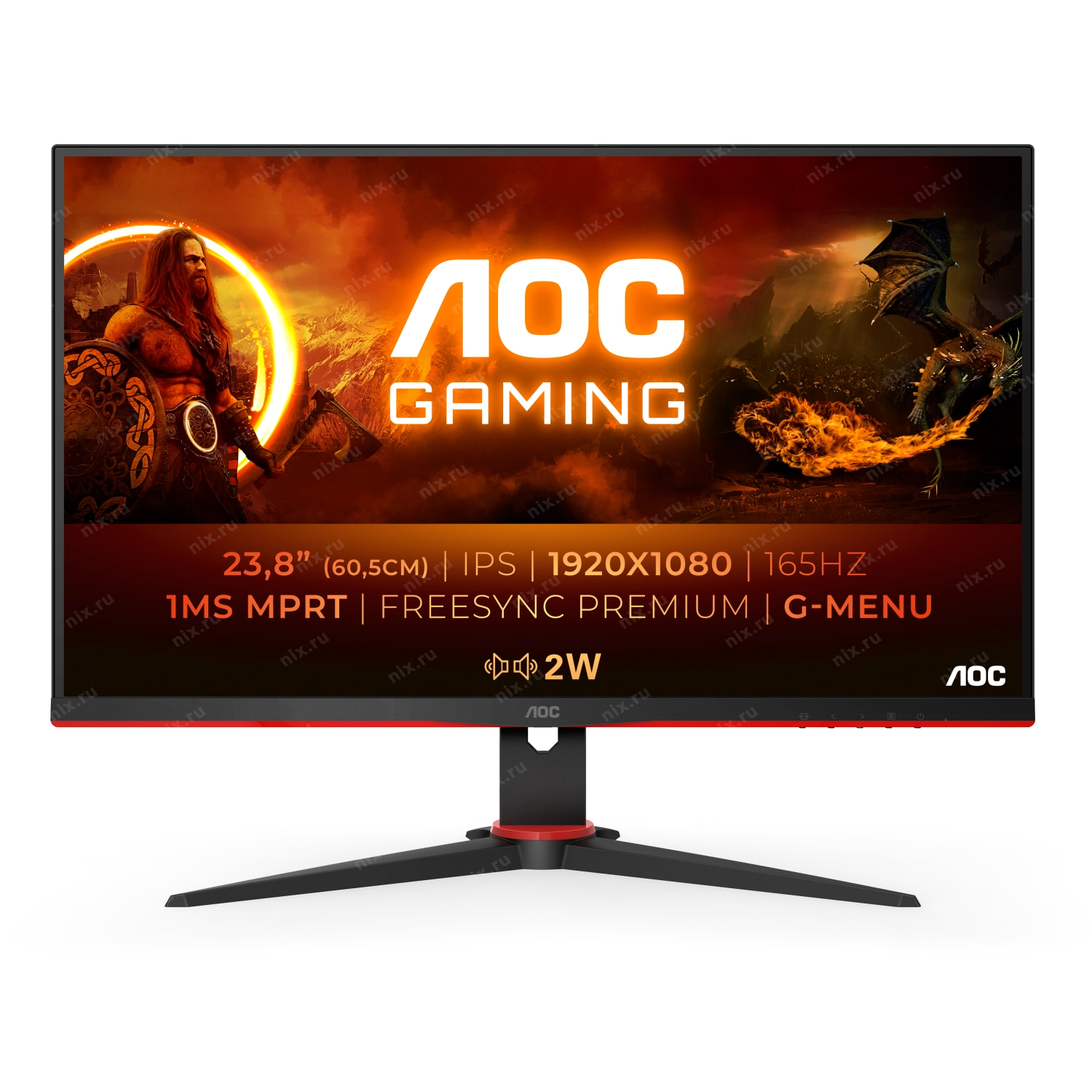 Монитор 23.8" AOC 24G2SPAE Black+Cherry ( 1920х1080(FHD) IPS, nonGLARE, 165 Hz, 300 cd/m2, H178°/V178°, 1000:1, 80M:1, 16.7M, 1ms, VGA, 2xHDMI, DP, Tilt, Speakers) | НИКС Екатеринбург