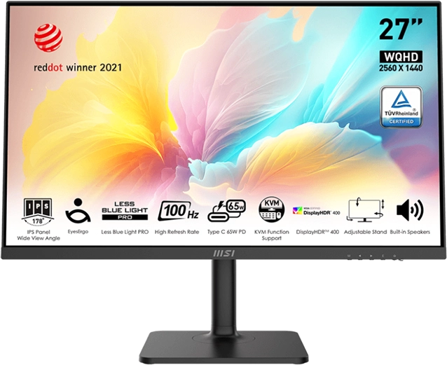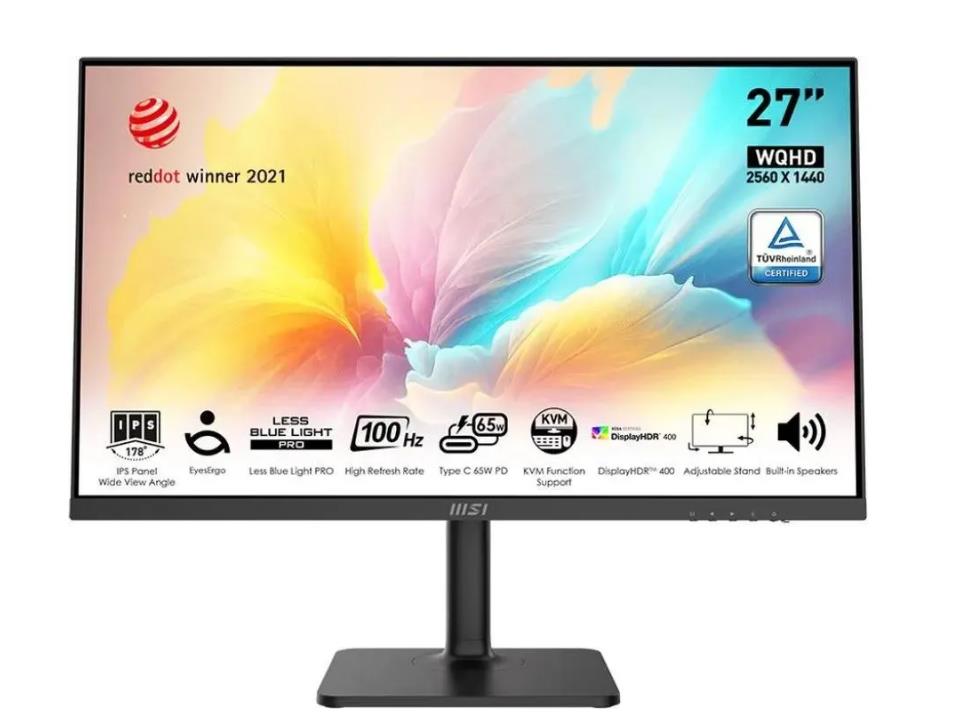 Монитор MicroStar MSI PRO 27" MD272QXP черный (IPS 2560x1440 100Hz 16:9 300cd 178/178 HDMI DisplayPort USB HAS Pivot) [9S6-3PB19H-233]