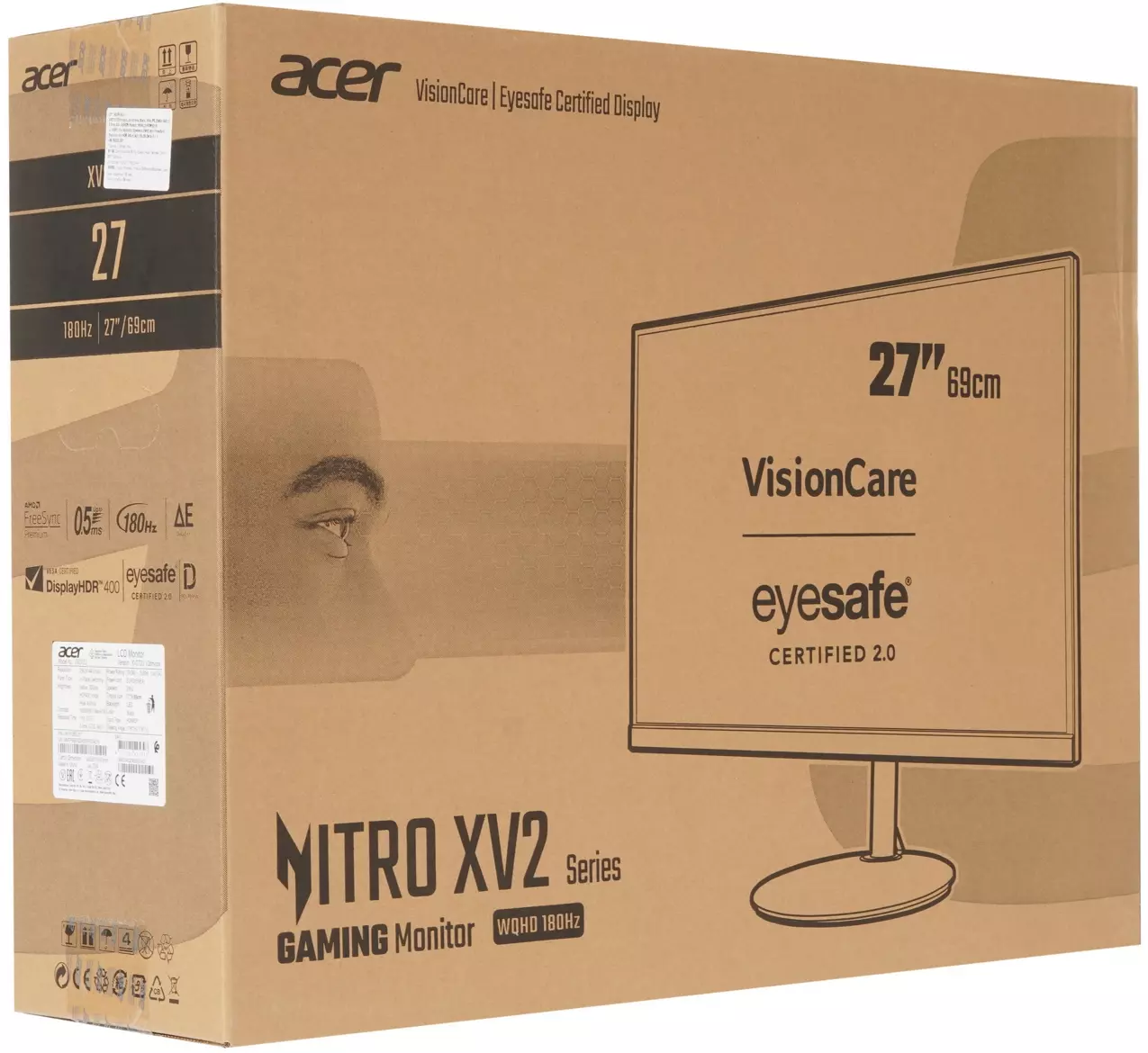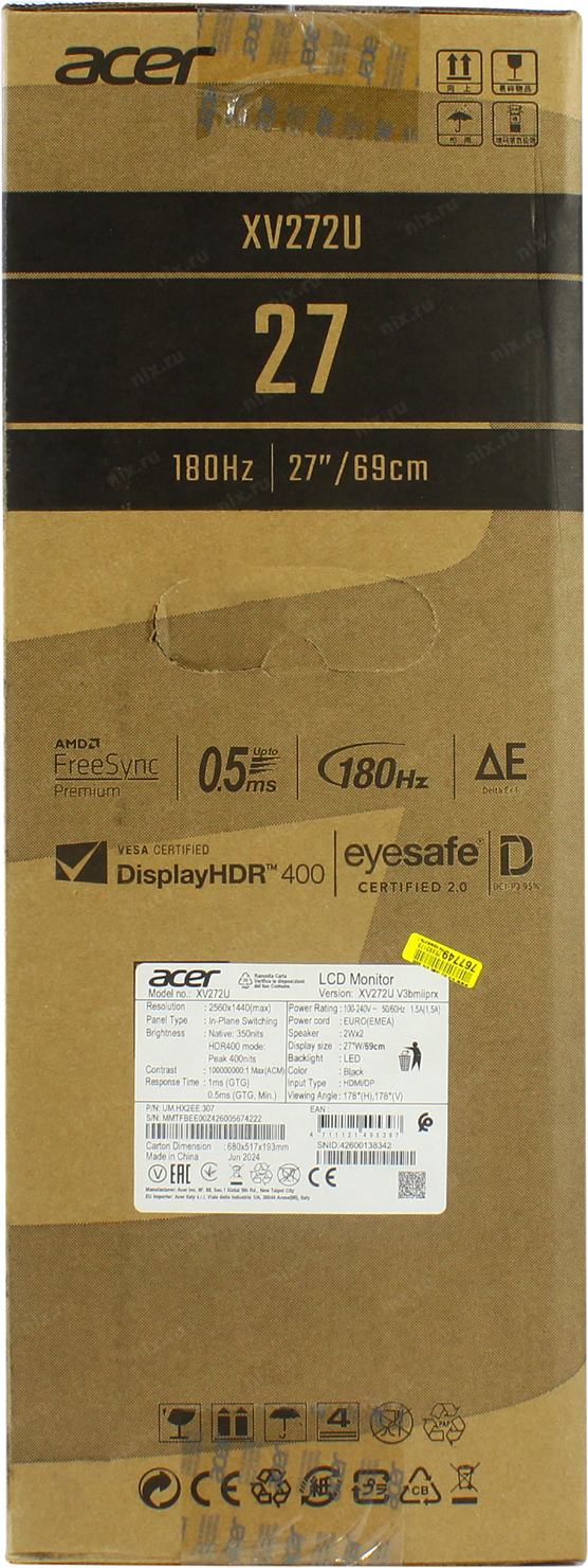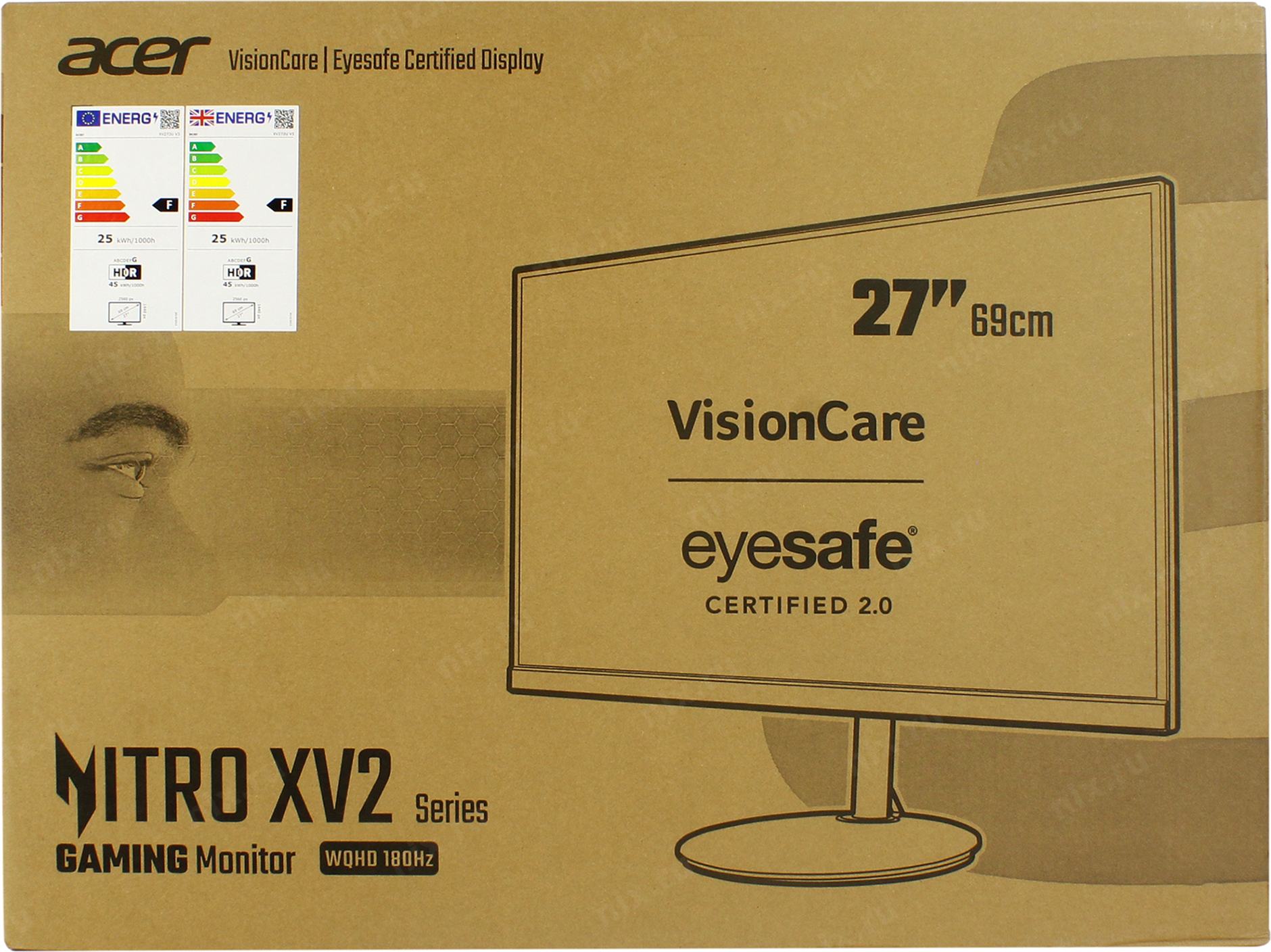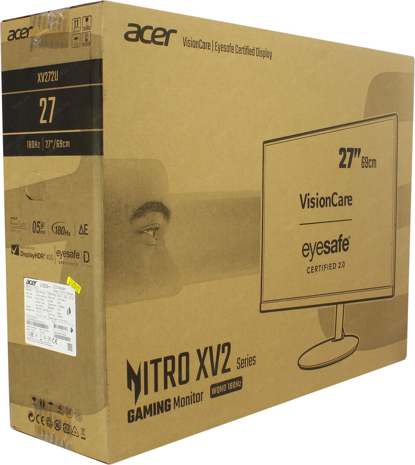 Монитор LCD Acer 27" Nitro XV272UV3bmiiprx черный (IPS 2560x1440 180Hz 1ms 178/178 350cd 1000:1 8bit 2xHDMI2.0 DisplayPort1.2 FreeSync 2x2W Pivot VESA) [UM.HX2EE.307]