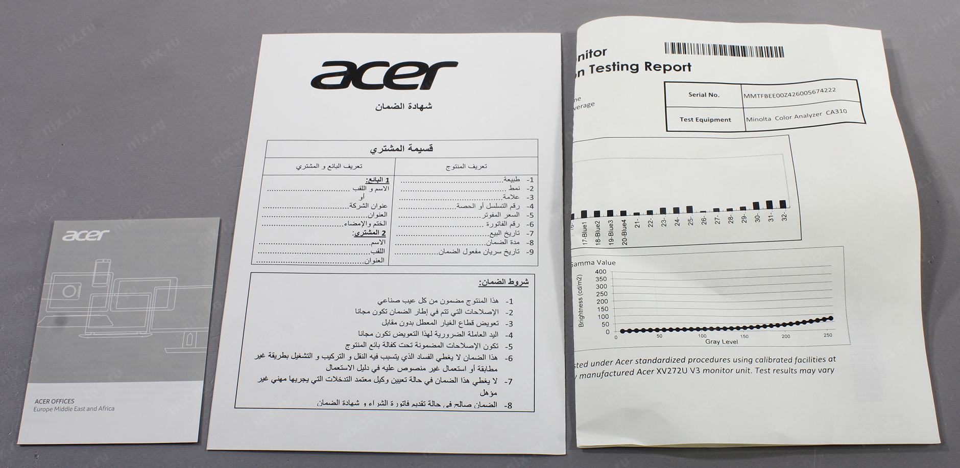 Размеры упаковки (измерено в никсе)