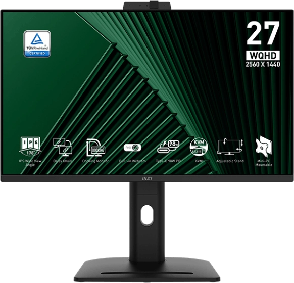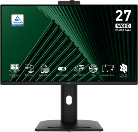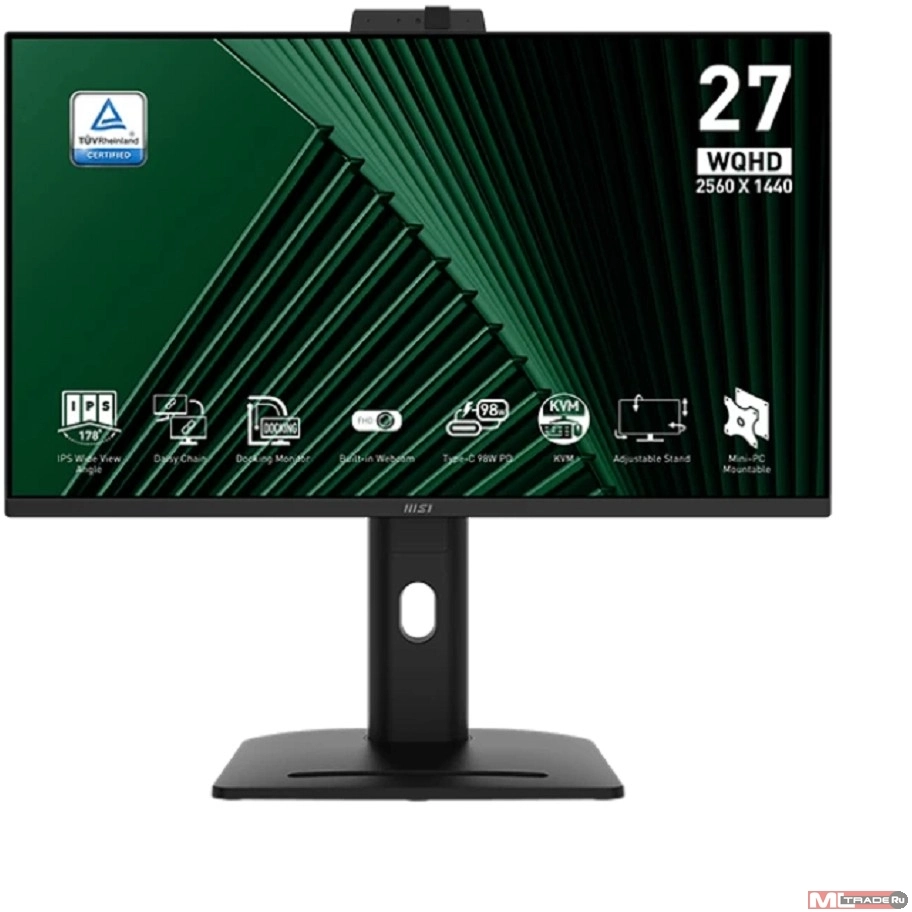 Монитор MicroStar MSI PRO 27" MP275QPDG (IPS 2560x1440 100Hz 1ms 1300:1 250cd178/178 2xHDMI DisplayPort USB-C 4xUSB RJ-45 Speaker WebCam HAS Pivot) [9S6-3PC8CM-005]