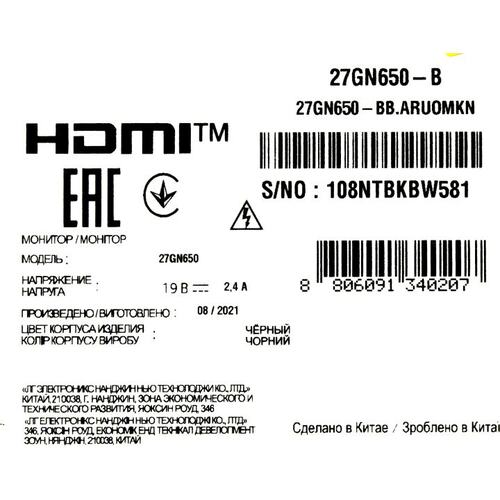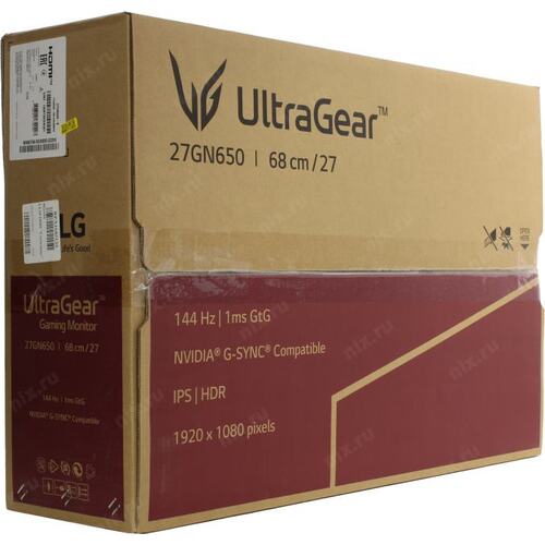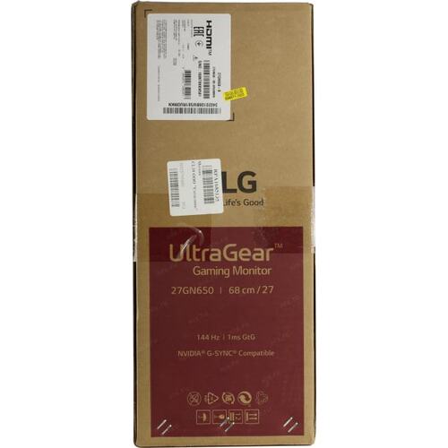Монитор 27" LG 27GN650-B Black (IPS, 1920x1080, HDMI+HDMI+DP, 1 ms, 178°/178°, 350 cd/m, 1000:1, 144Hz)