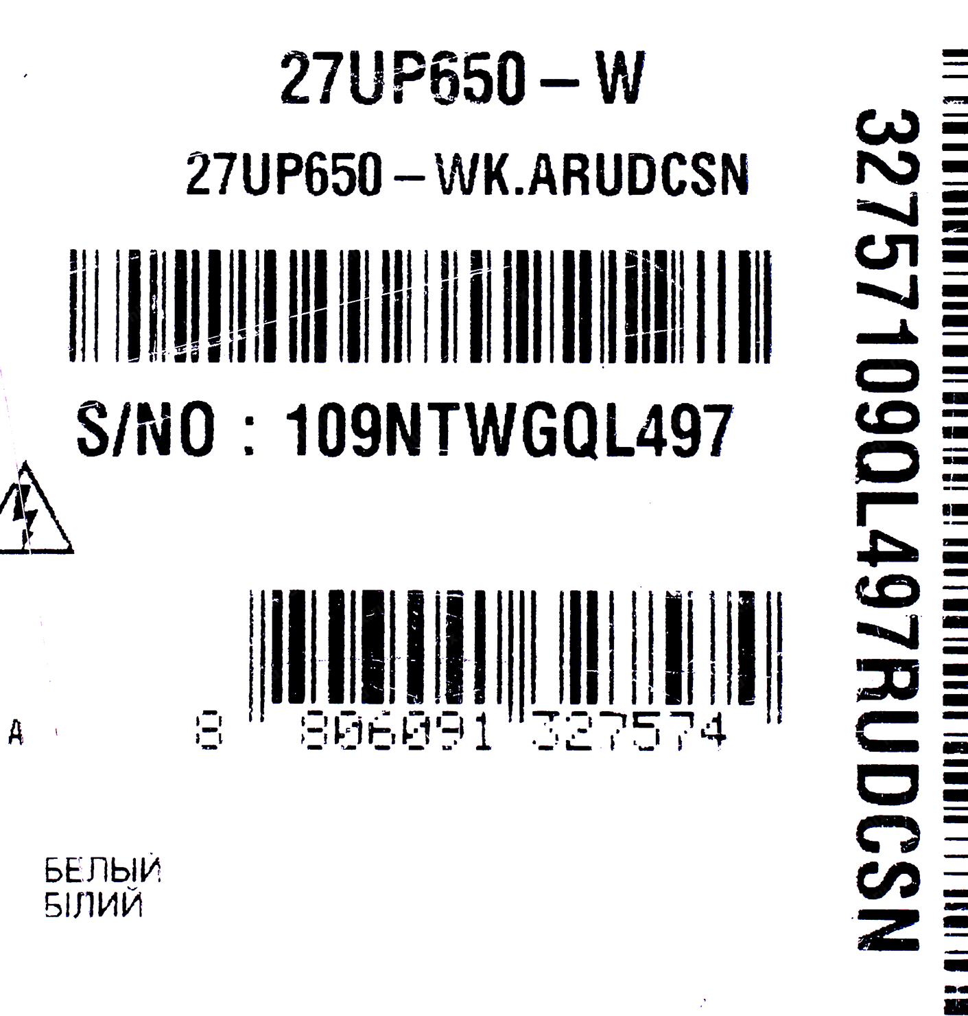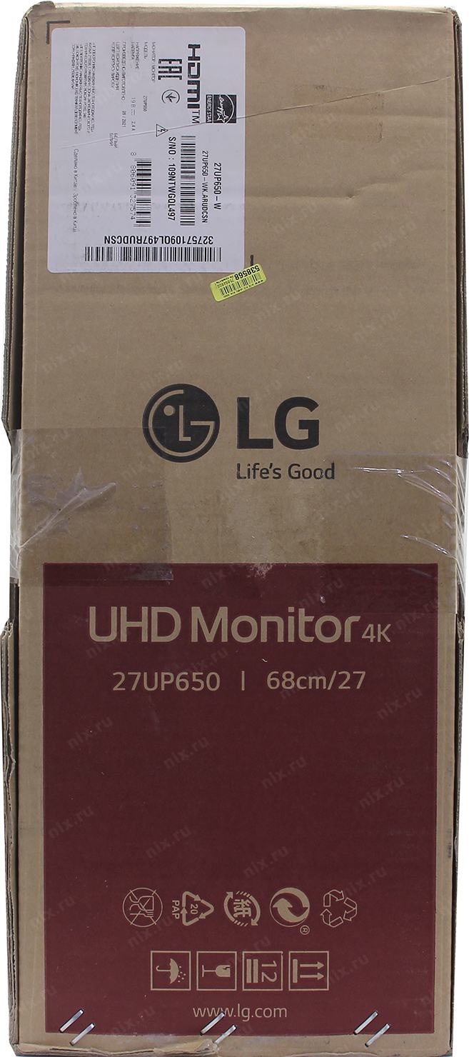 Монитор LCD LG 27" 27UP650-W (IPS 3840x2160 60Hz 5ms 178/178 400cd 1200:1 10bit(8bit+FRC) HDR10 DisplayHDR400 2xHDMI2.0 DisplayPort1.4 FreeSync AudioOut 2x5W Pivot VESA) [27UP650-W.ARUZ]