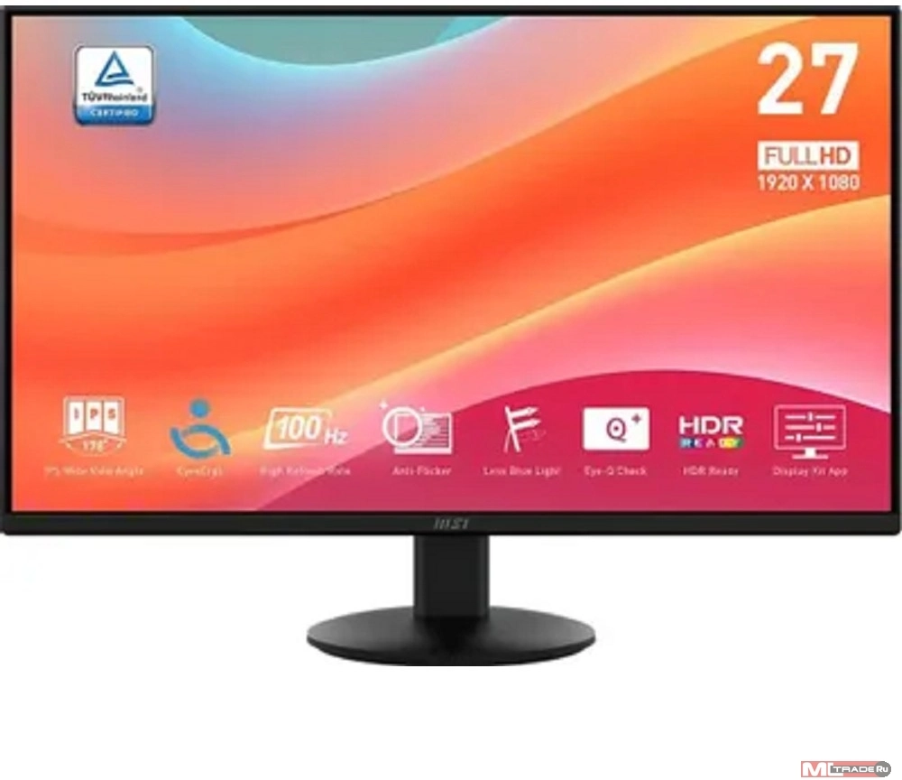 Монитор 27" MSI PRO MP272L IPS, 1920x1080, 100Hz, 4ms, 250сd/m, 1300:1, HDR | HDMI(1.4b), DP(1.2a) | ExPSU, Black (3PD6) 9S6-3PD6CT-008