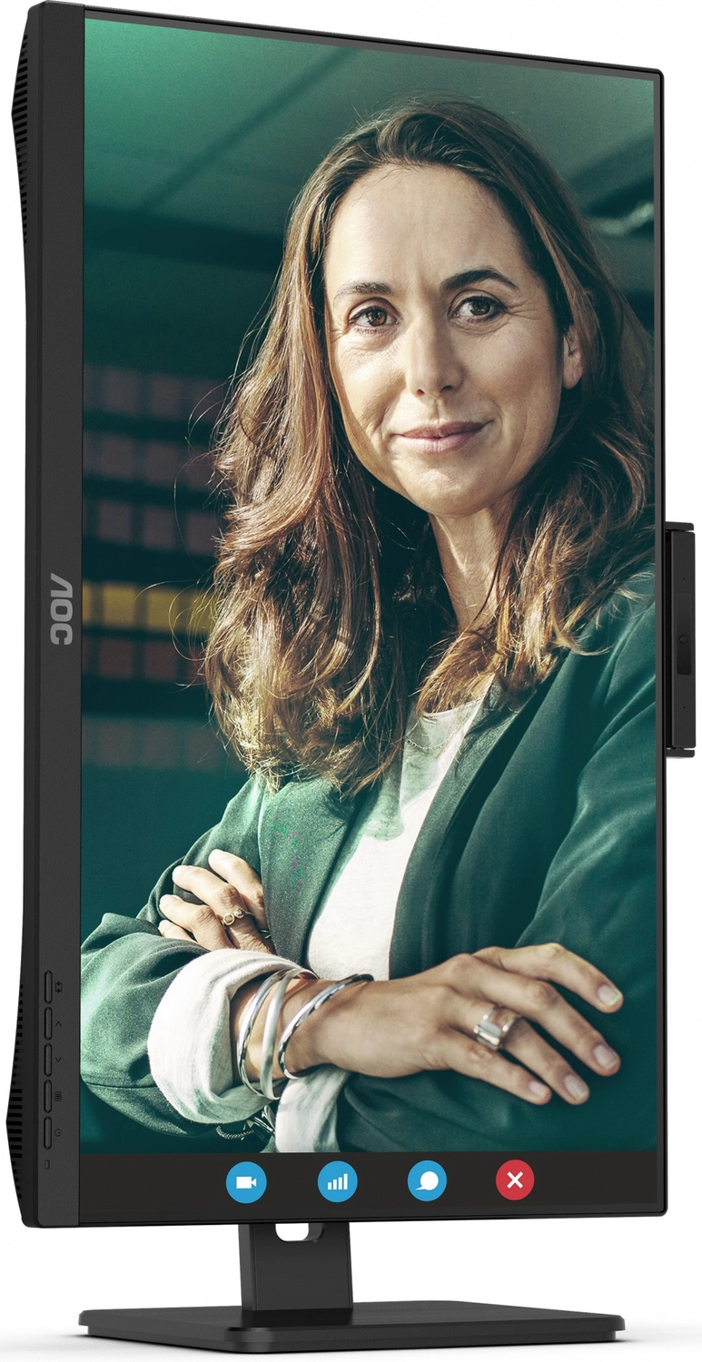 Монитор 27" AOC Q27P3QW IPS, 2560x1440, 75Hz, 4ms, 350сd/m, 1000:1 | 2xHDMI(1.4), DP(1.2), 4xUSB 3.2 | HAS, Pivot, Swivel, InPSU, Speakers, Cam, Vesa 100, Black