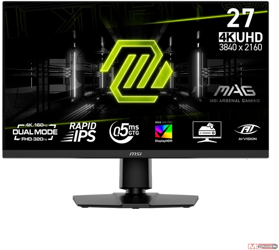 Монитор 27" MSI MAG 272URDF E16 Rapid IPS, 3840x2160/1920x1080, 160Hz/320Hz, 0,5ms, 400сd/m, 1000:1, HDR10 | 2xHDMI(2.1), DP(1.4a), 2xUSB2.0 | HAS, Pivot, Swivel, InPSU, Vesa 100, Black (3CE7) 9S6-3CE79T-009