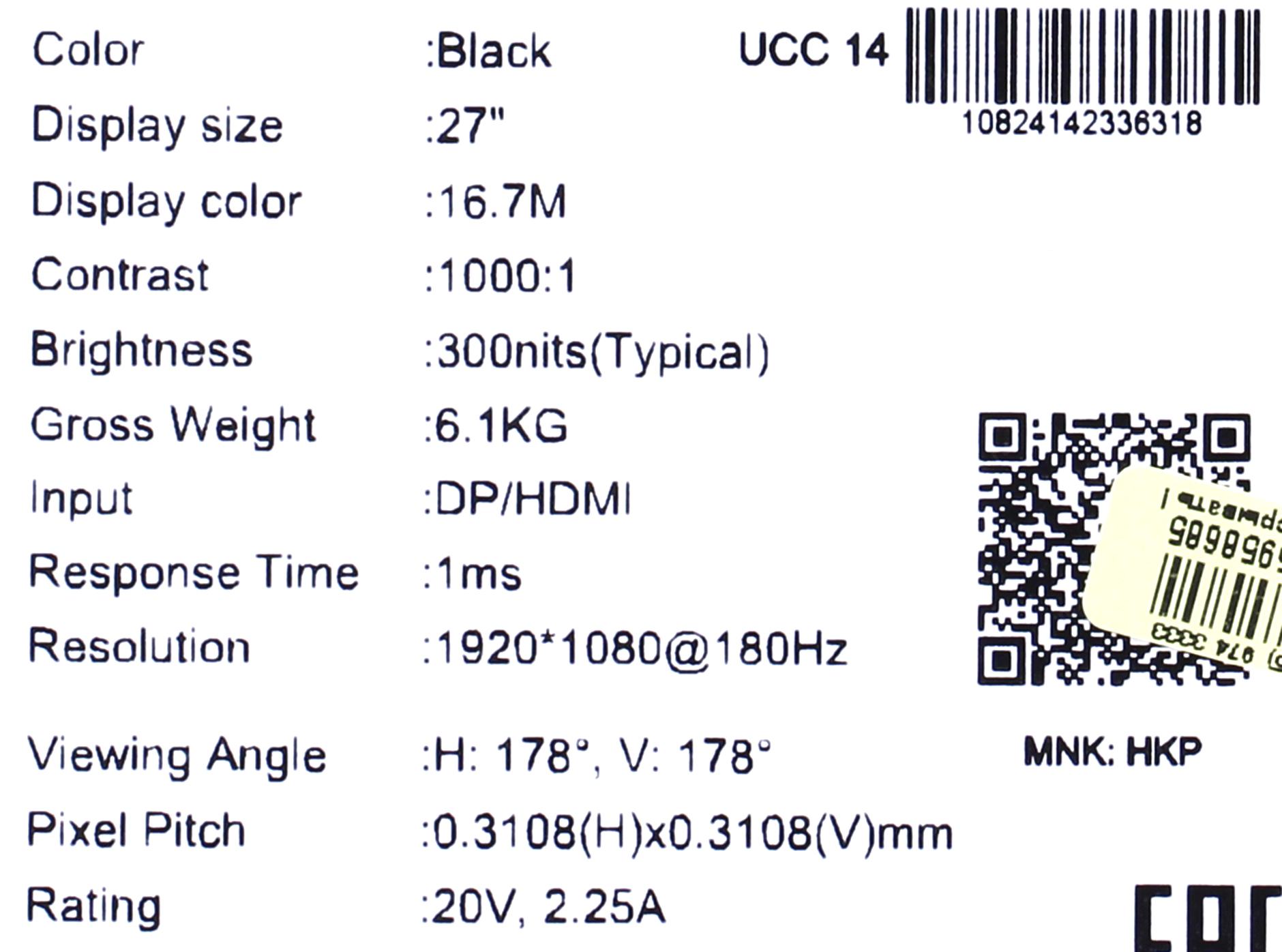 1 мс MPRT (Moving Picture Response Time); 4 мс GtG