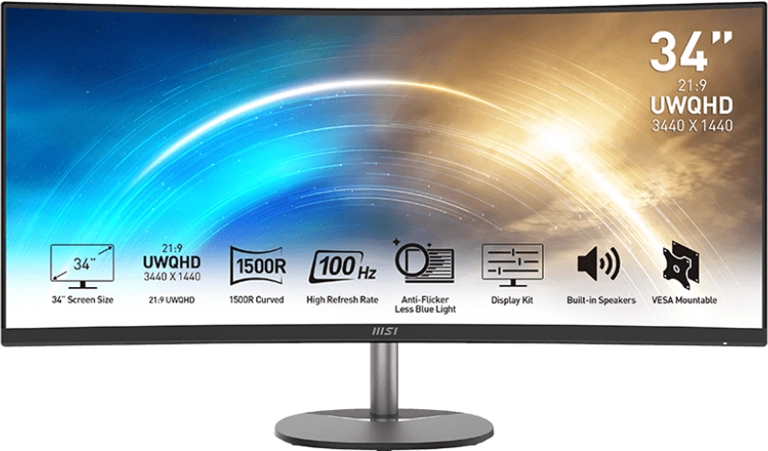 Монитор MicroStar MSI PRO 34" MP341CQ (VA Curved 3440x1440 100Hz 1ms 178/178 300cd 3000:1 2xHDMI DisplayPort MM) [9S6-3PB2CT-027] | НИКС Екатеринбург