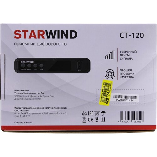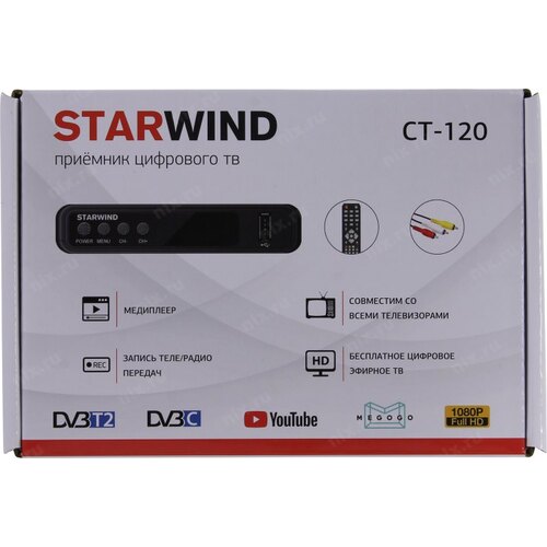 Ресивер DVB-T2 Starwind CT-120 черный