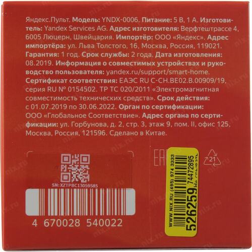 Умный пульт Yandex SmartControl YNDX-0006 р.д.18м черный ЯНДЕКС | НИКС Екатеринбург