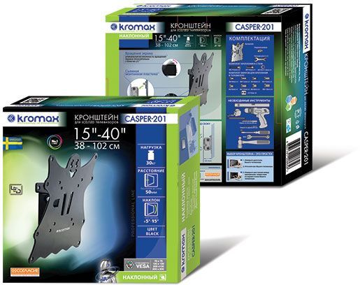 Кронштейн для телевизора Kromax Casper-201 черный 20"-43" макс.30кг настенный наклон 20173 | НИКС Екатеринбург