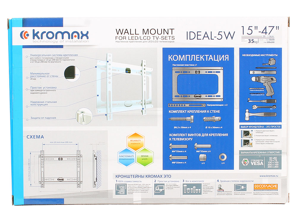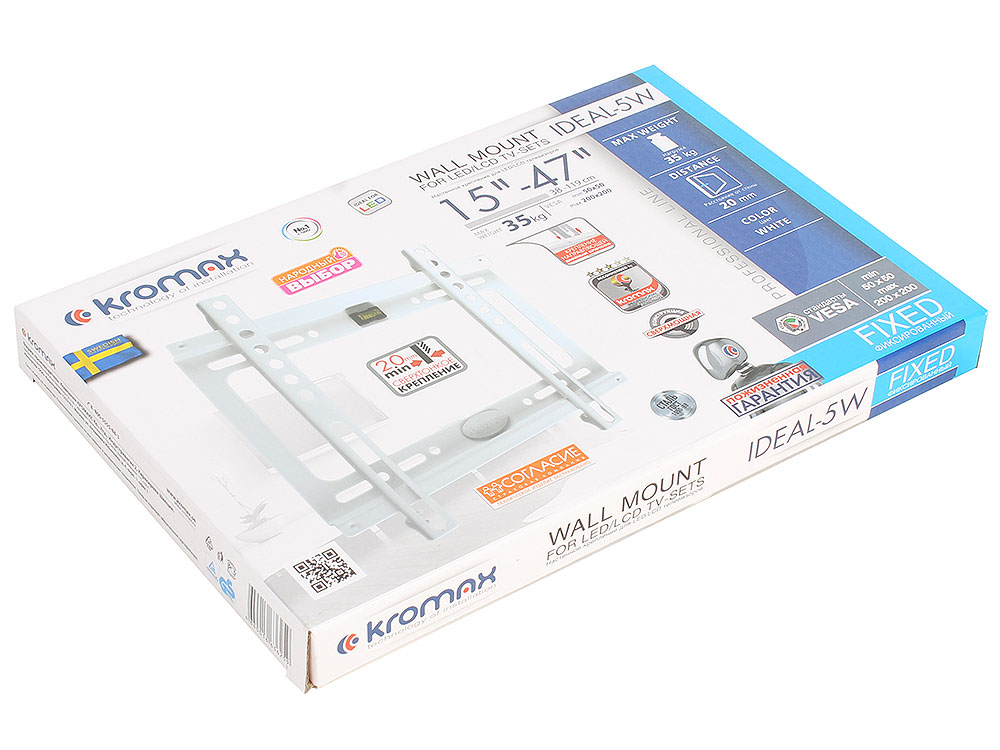Кронштейн для телевизора Kromax IDEAL-5 белый 15"-47" макс.35кг настенный фиксированный 26021 | НИКС Екатеринбург