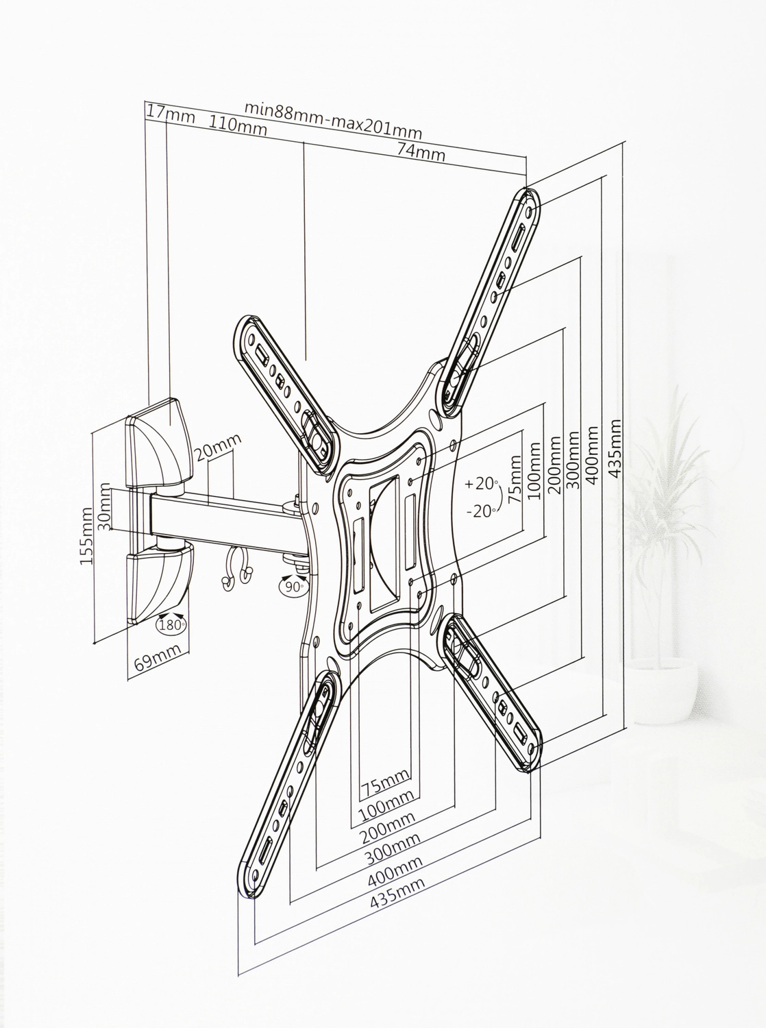 Кронштейн для телевизора Ultramounts UM868 черный 23"-55" макс.35кг настенный поворот и наклон