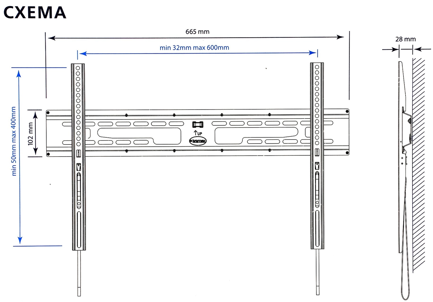Настенное крепление для телевизоров с диагональю от 32 до 90 дюймов и весом не более 65 кг