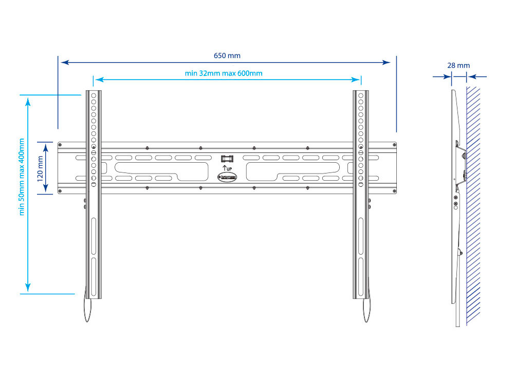 VESA 50 x 50, VESA 75 x 75, VESA 100 x 100, VESA 200 x 100, VESA 200 x 200, VESA 300 x 200, VESA 300 x 300, VESA 400 x 200, VESA 400 x 300, VESA 400 x 400, VESA 600 x 400
