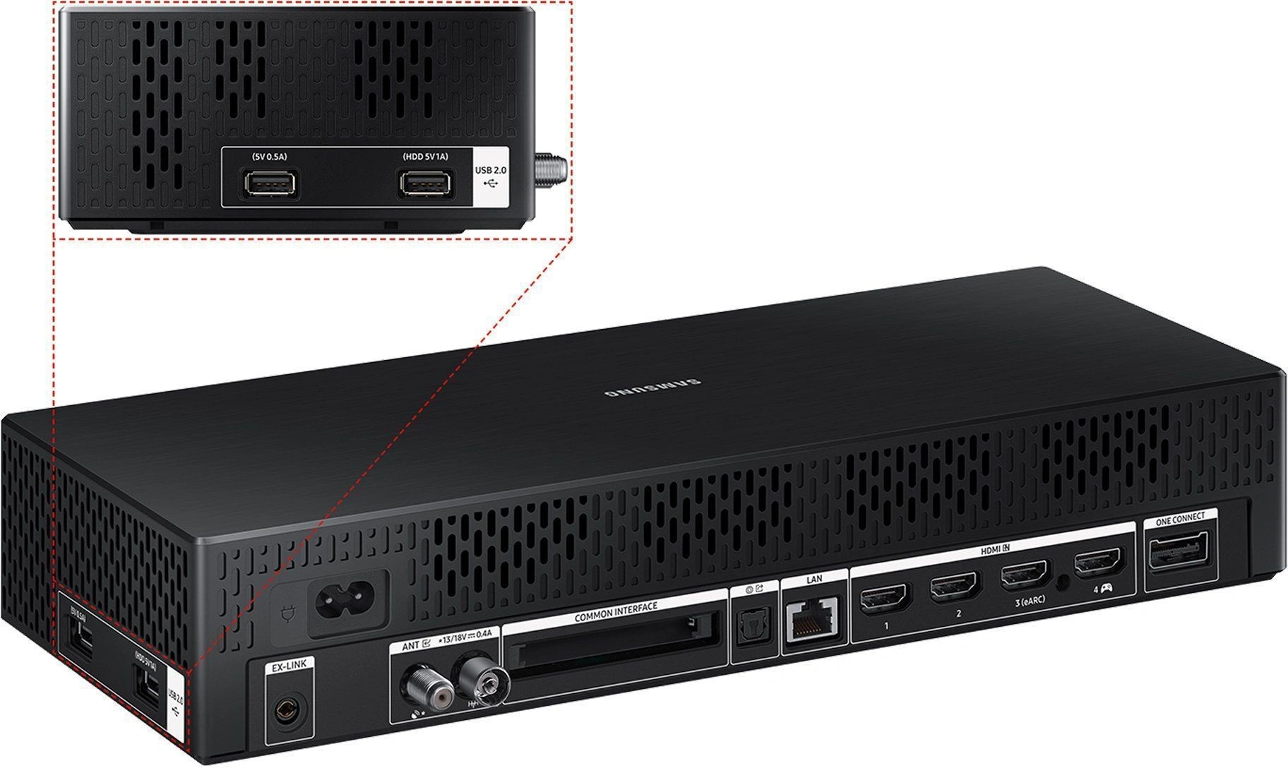 CI+/PCMCIA, HDMI, RJ-45 (Ethernet), S/PDIF (оптический), USB Type-A