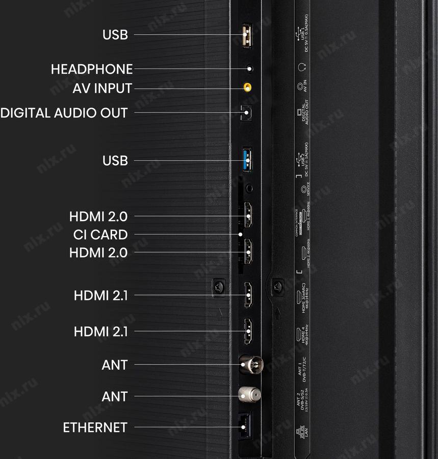 USB 2.0 Type A, USB 3.0 Type A, разъем 3.5 мм для подключения наушников, вход AV, оптический цифровой аудиовыход