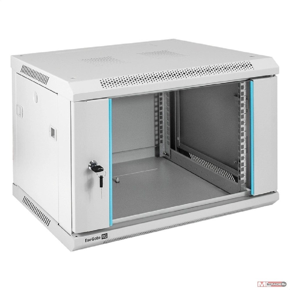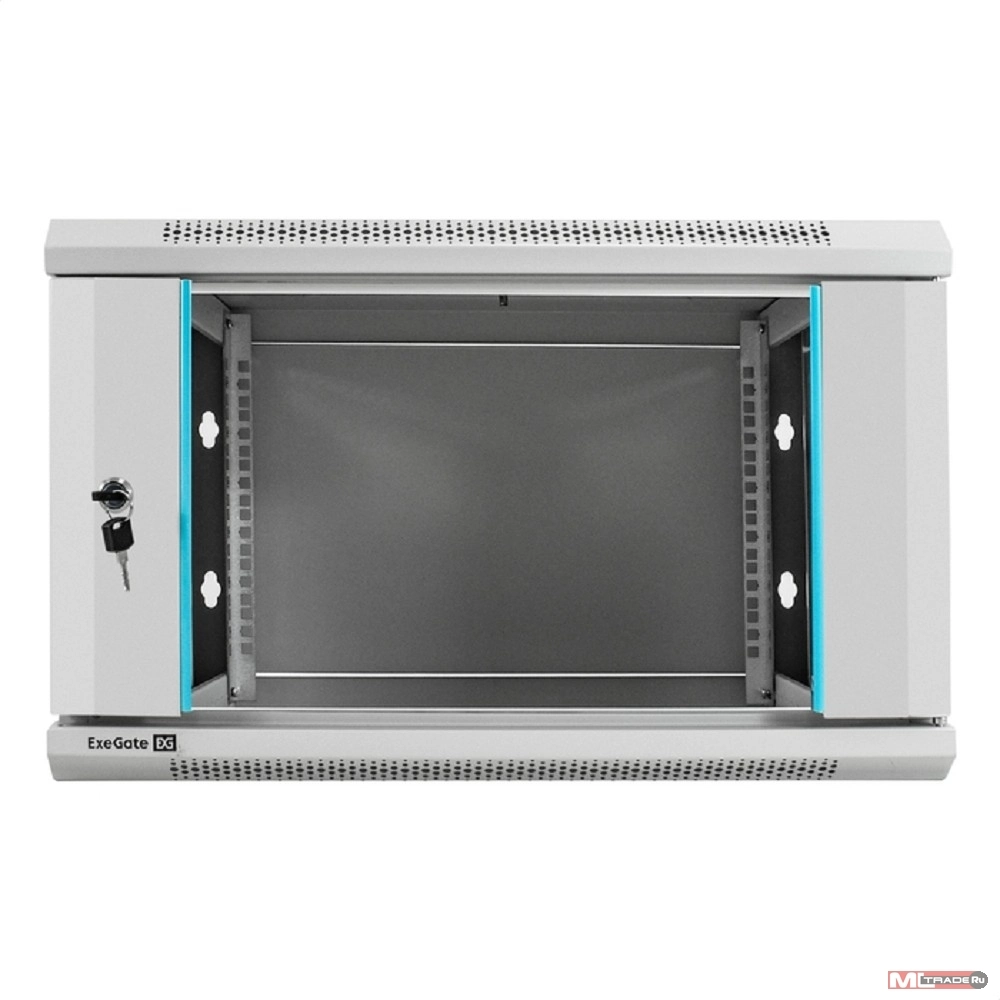 Монтажный шкаф Exegate EX298599RUS Шкаф телекоммуникационный 19" настенный 6U ExeGate EC-WM-6U.450.G.GREY (19”, 6U, 600x450x370mm (ШхГхВ), передняя дверь закаленное стекло, съемные боковые панели, пыле- и влагозащит