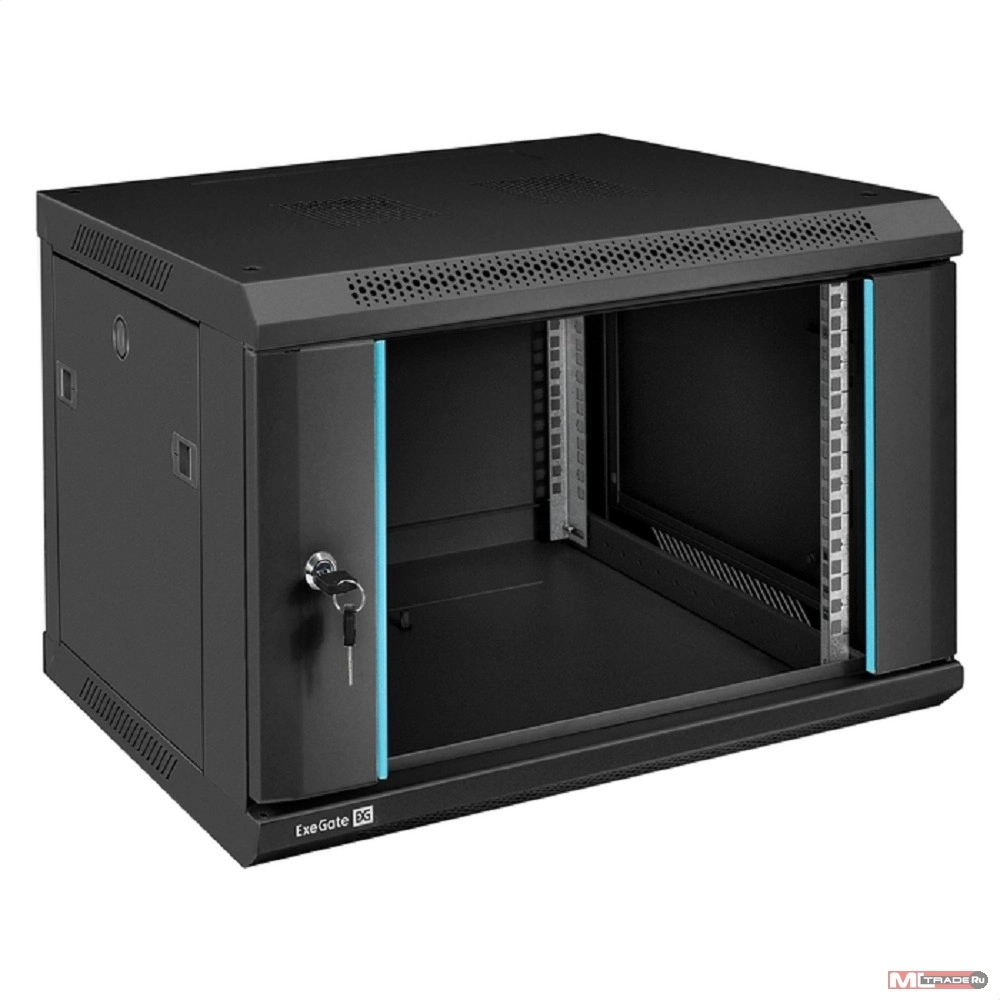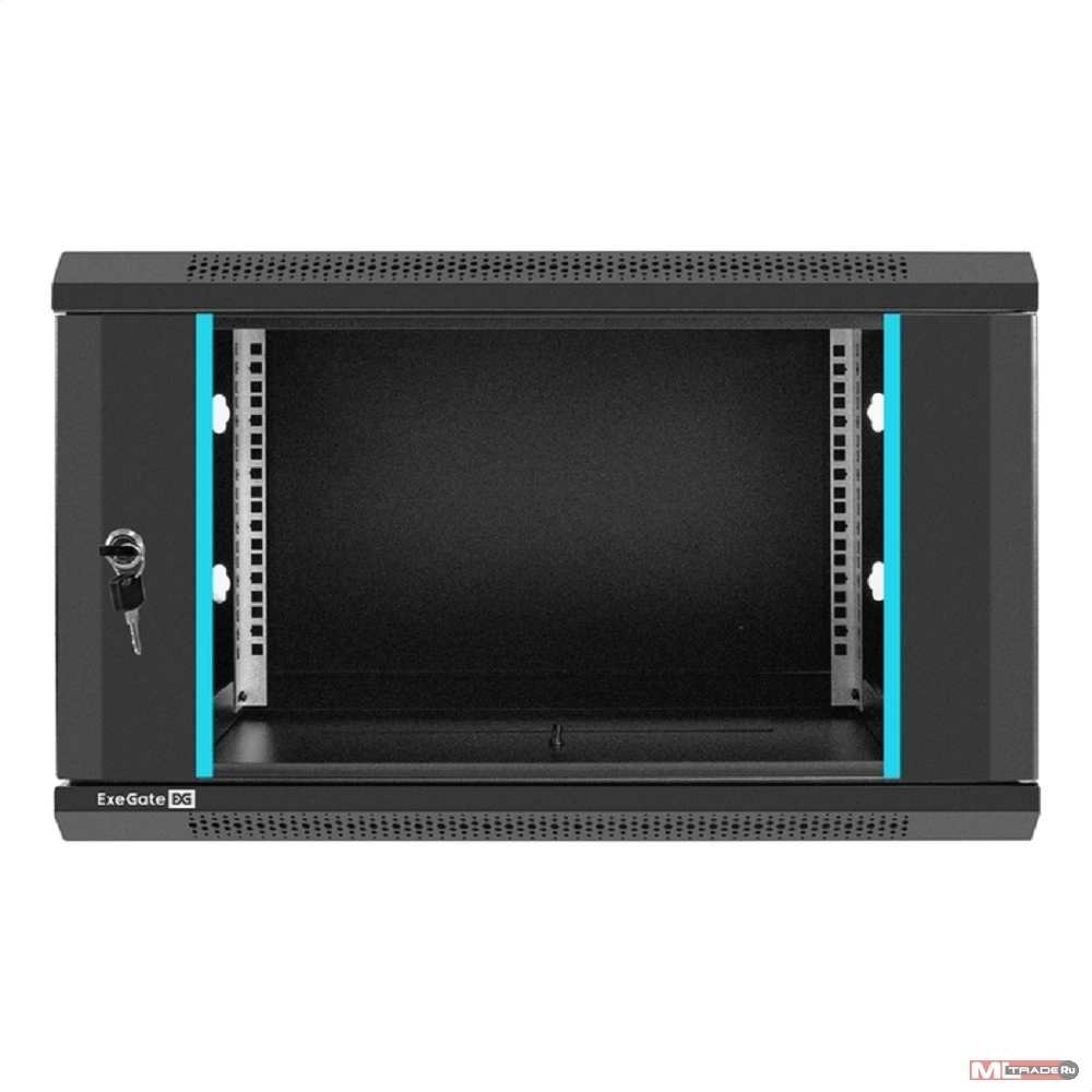 Монтажный шкаф Exegate EX298605RUS Шкаф телекоммуникационный 19" настенный 6U ExeGate EC-WM-6U.450.G.BLACK (19”, 6U, 600x450x370mm (ШхГхВ), передняя дверь закаленное стекло, съемные боковые панели, пыле- и влагозащи