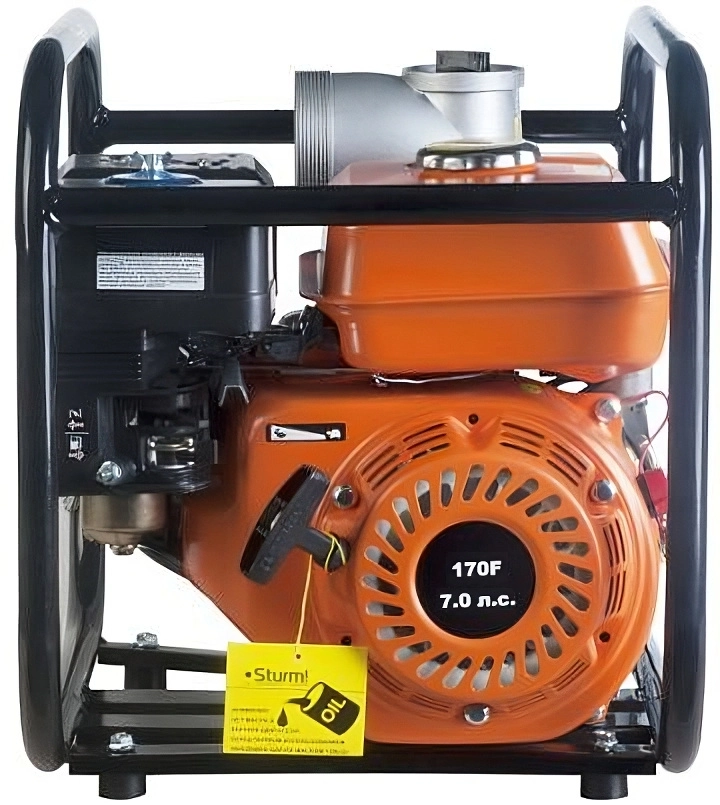 Самовсасывающий насос с 4-тактным бензиновым двигателем. Имеет широкое применение: водоснабжение строительных площадок, жилых домов, дачных участков, орошение и полив полей и садовых участков, выкачивание воды из водоемов, бассейнов и др.
