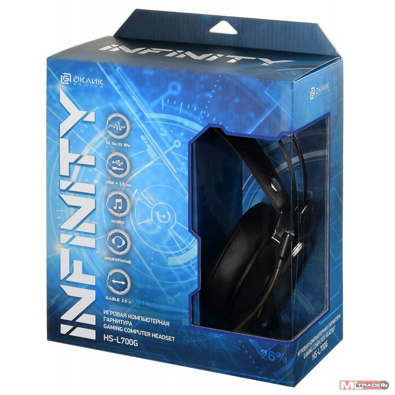 Наушники с микрофоном Оклик HS-L700G INFINITY черный 2.2м мониторные оголовье (1102308) OKLICK