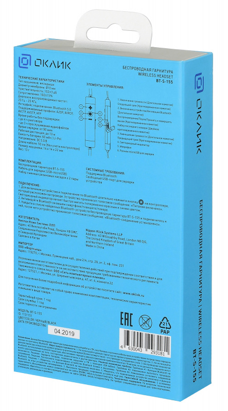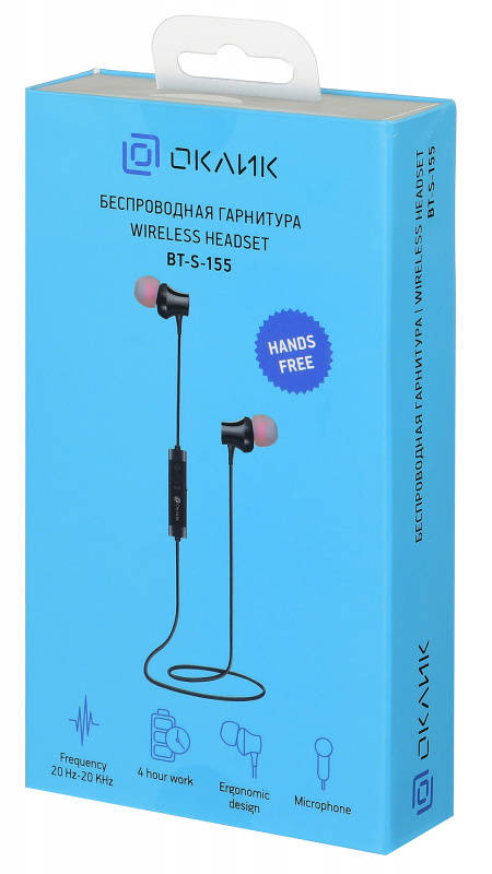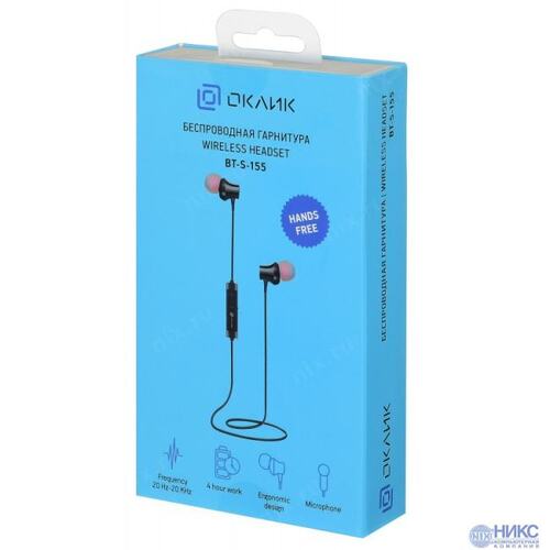 Гарнитура вкладыши Оклик BT-S-155 черный беспроводные bluetooth в ушной раковине (E716BT)