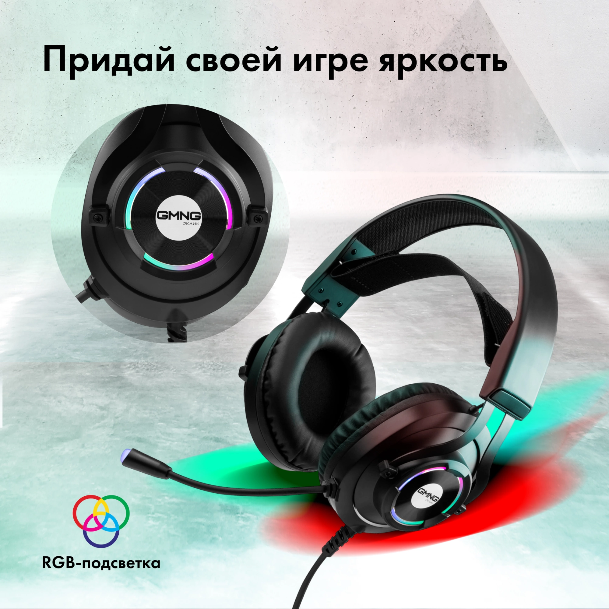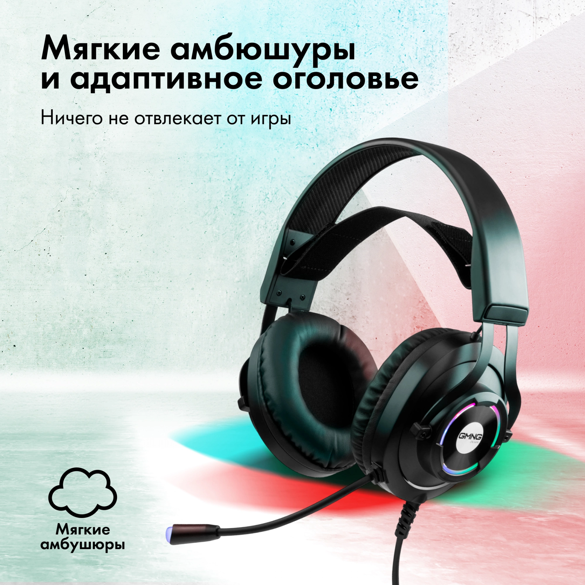 Управление звуком и подсветкой на проводе, Усиленный плетеный кабель, Адаптивное оголовье, Пассивное шумоподавление микрофона