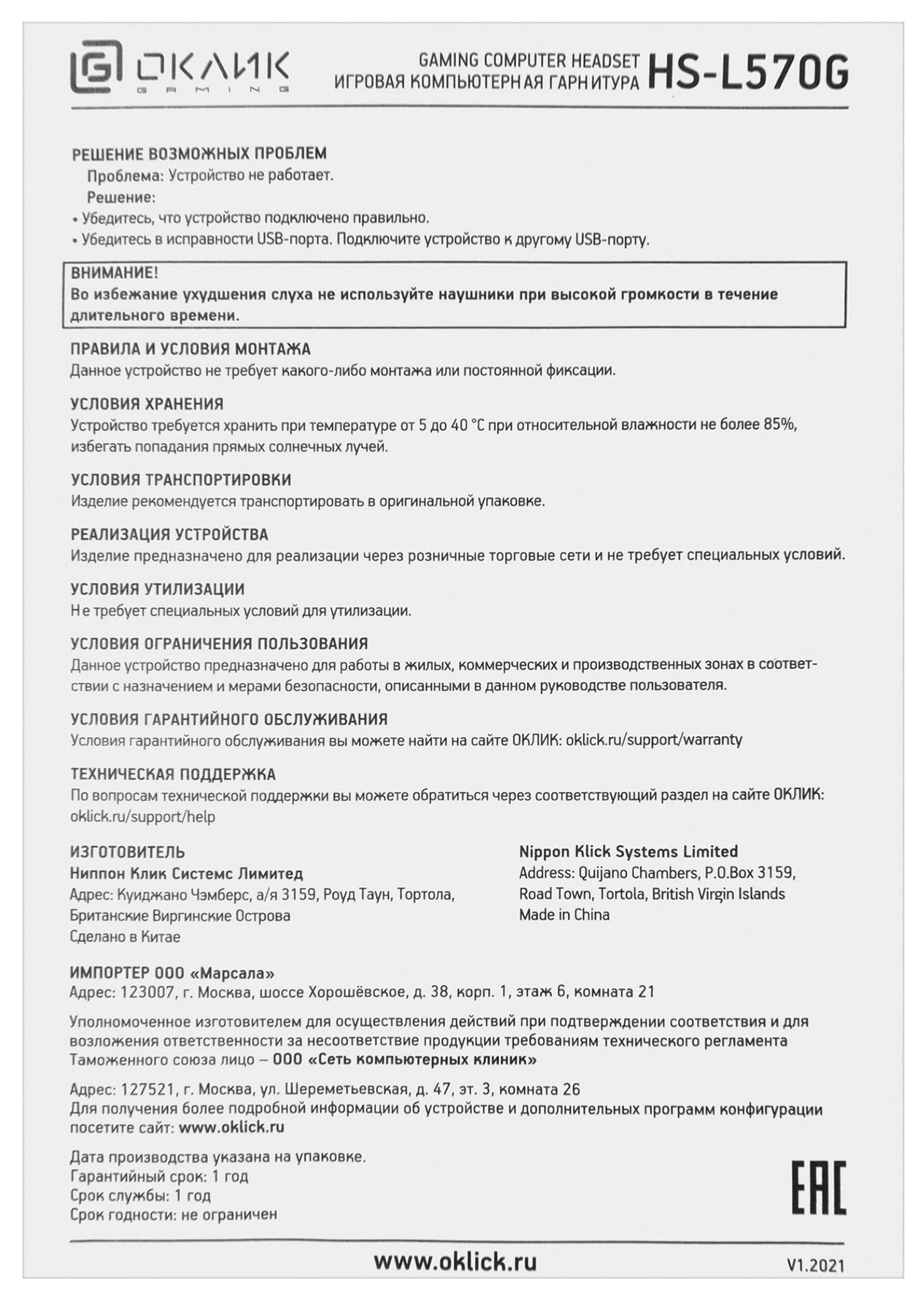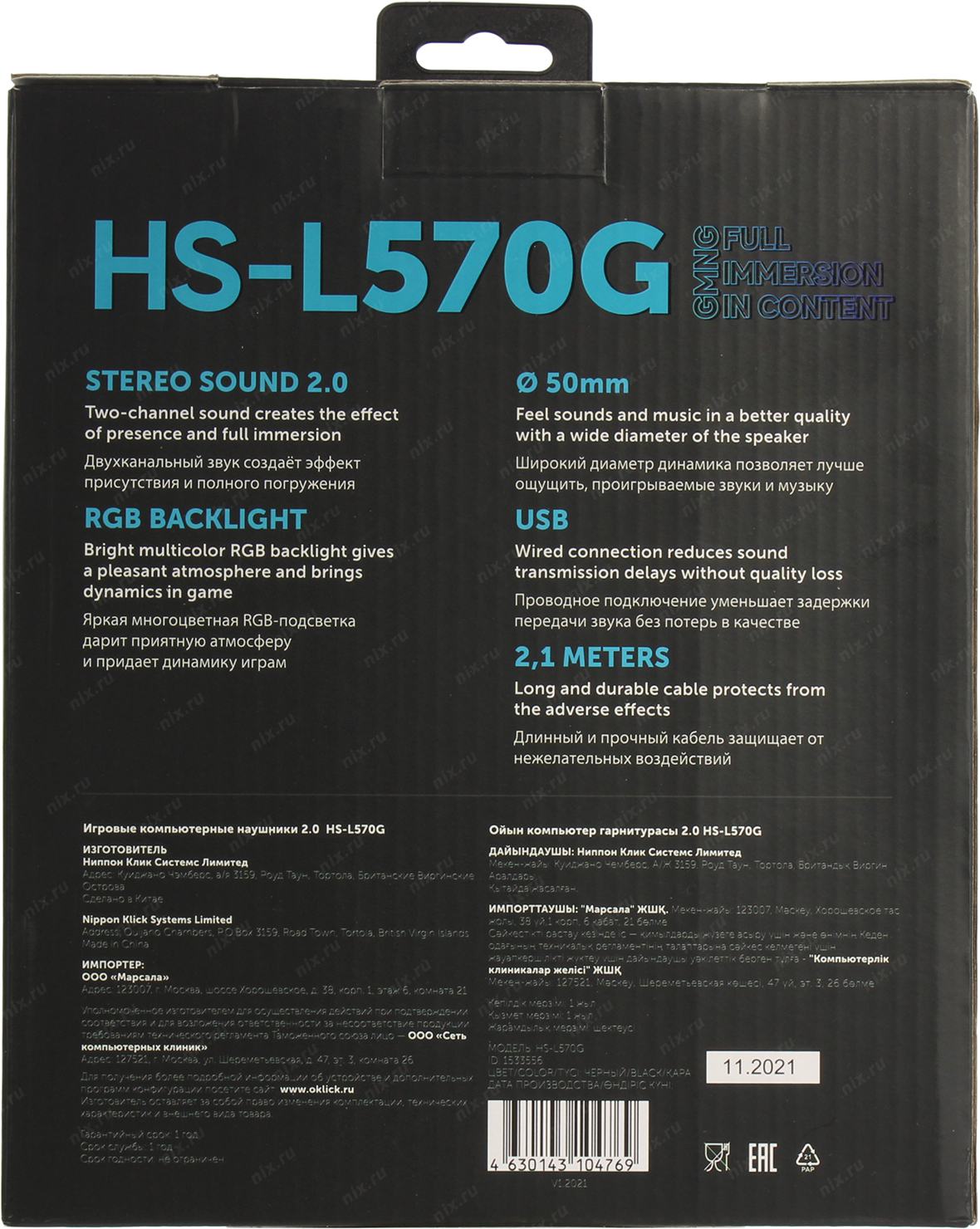 Наушники и микрофоны Oklick GMNG HS-L570G черный 2.1м мониторные (1533556)