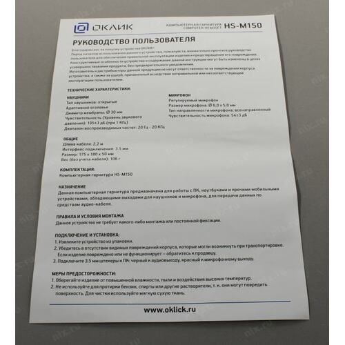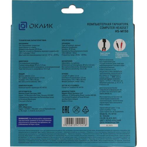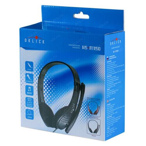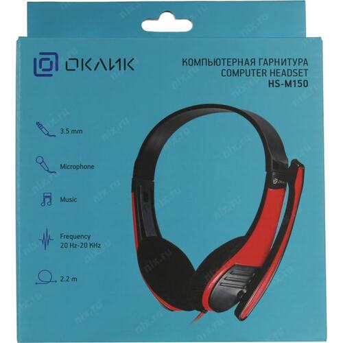 Наушники с микрофоном Оклик HS-M150 черный/красный 2.2м накладные оголовье (359486) OKLICK
