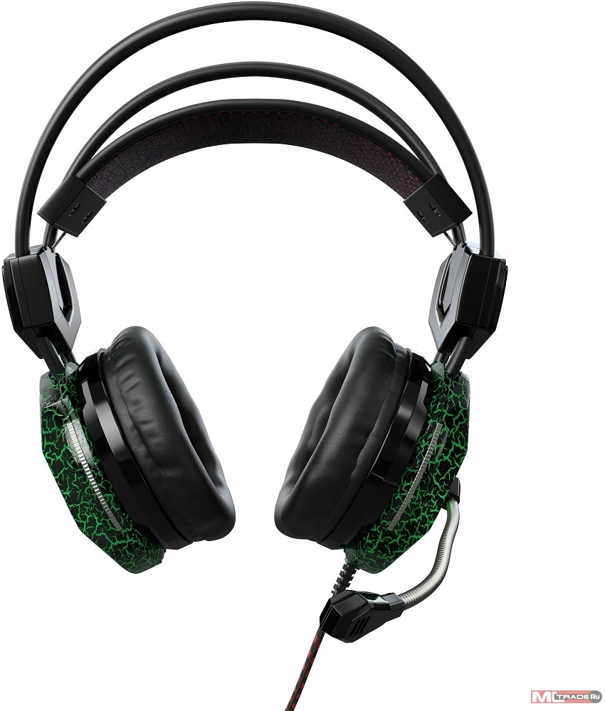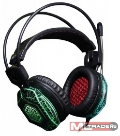 Многоцветная динамическая подсветка наушников, адаптивное оголовье, микрофон на гибкой поворотной ножке, усиленный плетеный провод, управление звуком на проводе