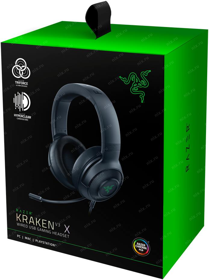 Наушники с микрофоном Razer Kraken V3 X черный 1.8м мониторные оголовье (RZ04-03750100-R3M1)