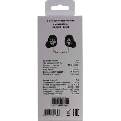 Гарнитура вкладыши Harper HB-517 TWS черный беспроводные bluetooth в ушной раковине