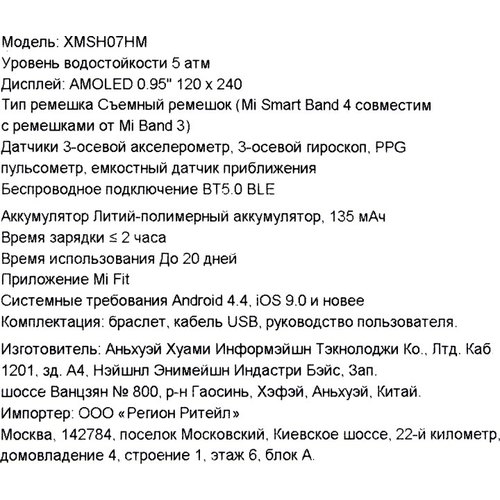 Умный браслет с новым цветным сенсорным AMOLED дисплеем, функцией вибрации для уведомлений, входящих вызовов и будильника для совместной работы со смартфоном или планшетом по Bluetooth через приложение Mi Fit. Теперь с помощью сенсорного экрана, вы можете управлять вызовами и воспроизведением музыки. С помощью браслета можно измерять шаги и пройденные километры, получать уведомления вибрацией с отображением иконок на дисплее, измерять пульс встроенным датчиком, разблокировать смартфон на Android и следить за качеством сна. Браслет может работать автономно до 20 дней, в том числе, без смартфона с последующей синхронизацией. Сенсорная кнопка для просмотра информации на дисплее (дата/время, шаги, километры, сердцебиение, заряд аккумулятора, погода, текстовые сообщения). Фитнес-браслет может показывать время по привычному взмаху руки, а его основной модуль также защищён от пыли и воды. В комплекте черный силиконовый гипоалергенный браслет Soft Touch - в качестве аксессуара доступны браслеты других цветов (приобретаются отдельно)