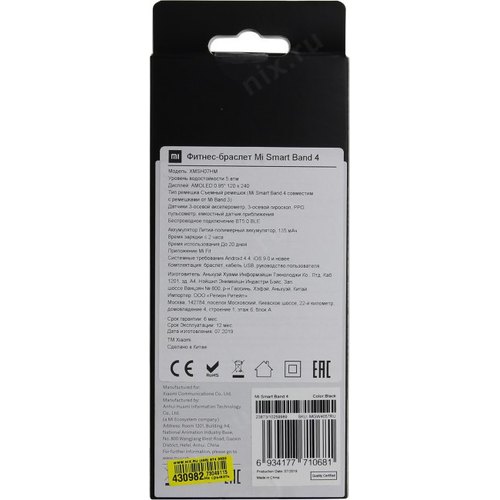 Фитнес-трекер Xiaomi Band 4 XMSH07HM AMOLED корп.:черный рем.:черный (MGW4057RU)