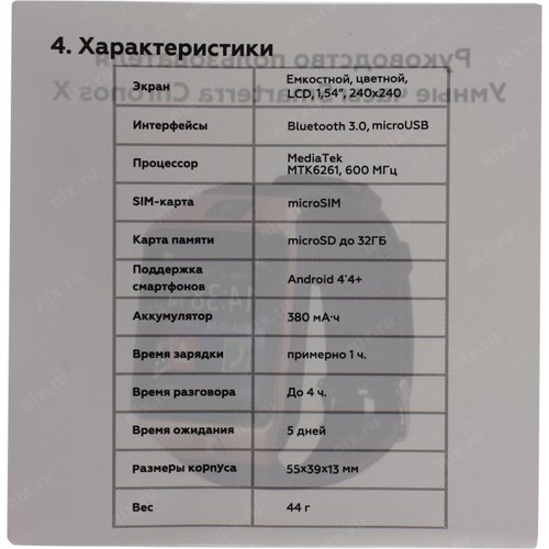 Полнофункциональный телефон/часы Chronos X сочетает в себе широкие возможности современного смартфона: звонки и смс, 0.3 Мп камера. Часы оснащены IPS дисплеем диагональю 1,54 дюйма, разрешением 240х240, а их корпус сделан из алюминия и защищен по стандарту IP54 (от брызг). Со смартфоном часы "общаются" по Bluetooth 3.0 и позволяют, без ущерба основным функциям, получать уведомления от смартфона.