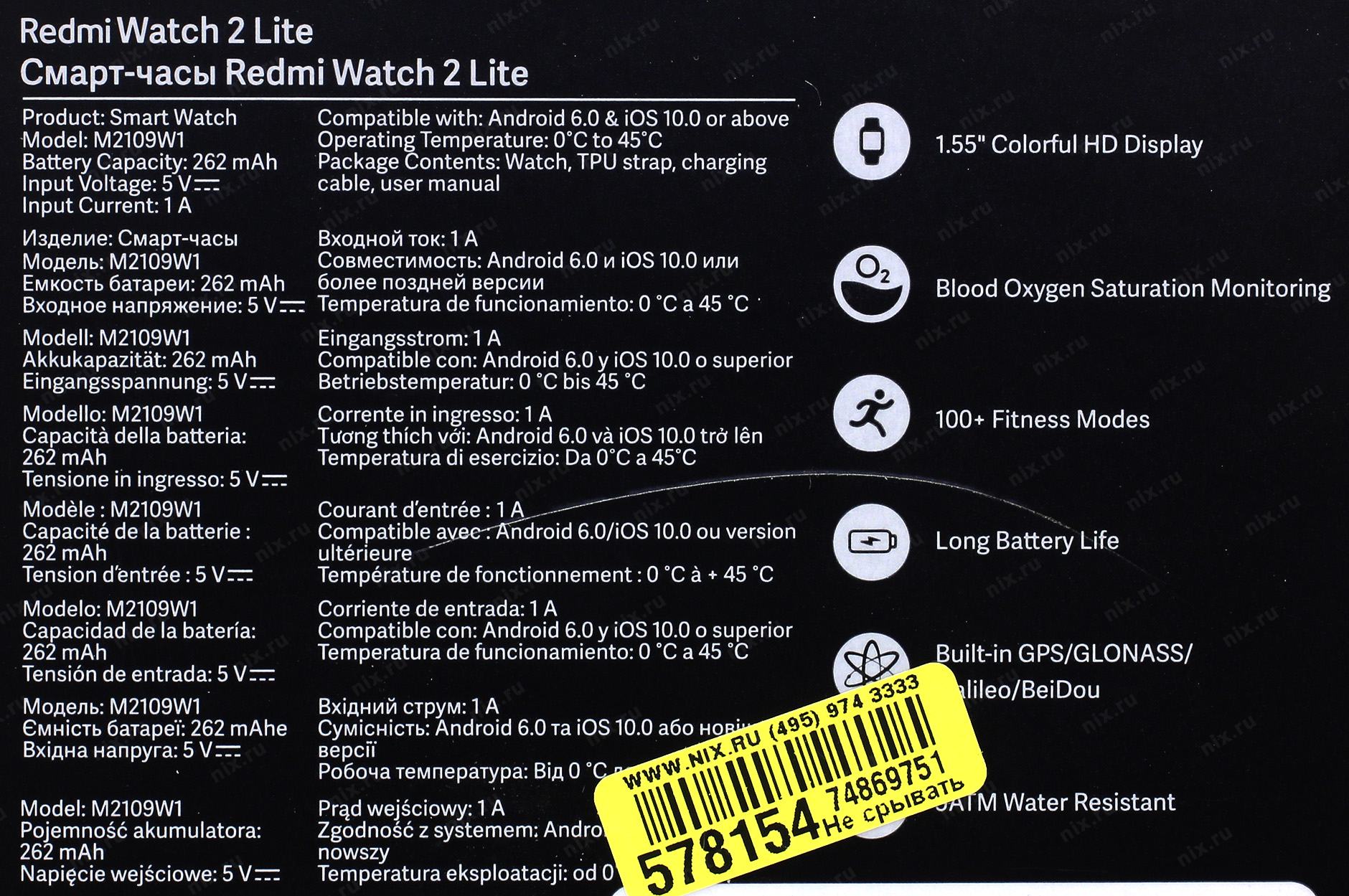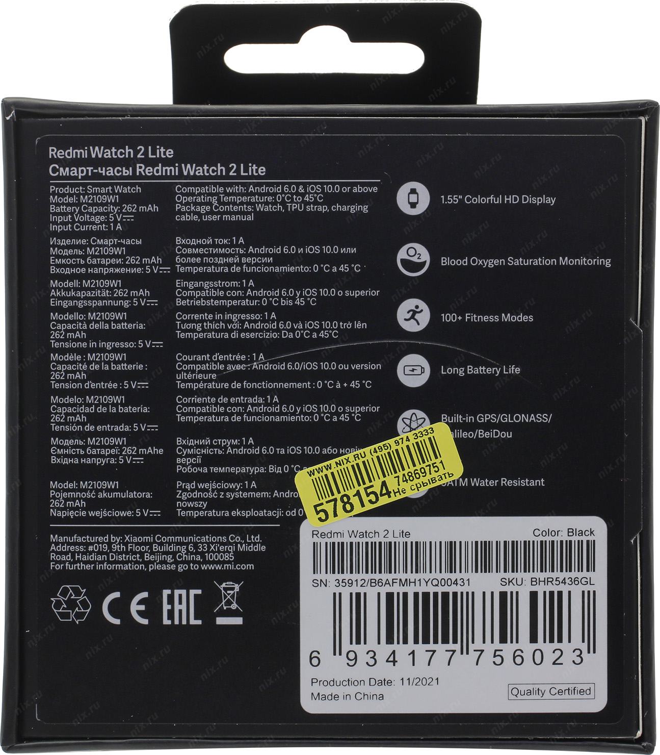Умные часы с LCD экраном, функцией вибрации для уведомлений, входящих вызовов и будильника для совместной работы со смартфоном по Bluetooth через приложение Xiaomi Wear. С помощью часов можно измерять шаги и пройденные километры, получать уведомления вибрацией, читать СМС и почту с экрана, измерять пульс и уровень кислорода в крови встроенным датчиком, разблокировать смартфон на Android, следить за качеством сна, смотреть погоду, использовать будильник и таймер. В часах также присутствуют GPS/ГЛОНАСС. Часы могут работать автономно до 10 дней. В комплекте силиконовый гипоалергенный ремешок. Более 100 различных оформлений экрана, 100+ видов активности, включая Бег на улице, беговая дорожка, на велосипеде, велотренажёр, произвольная активность, ходьба, трекинг, бег по пересечённой местности, бассейн, водоём, крикет, йога и т.п.