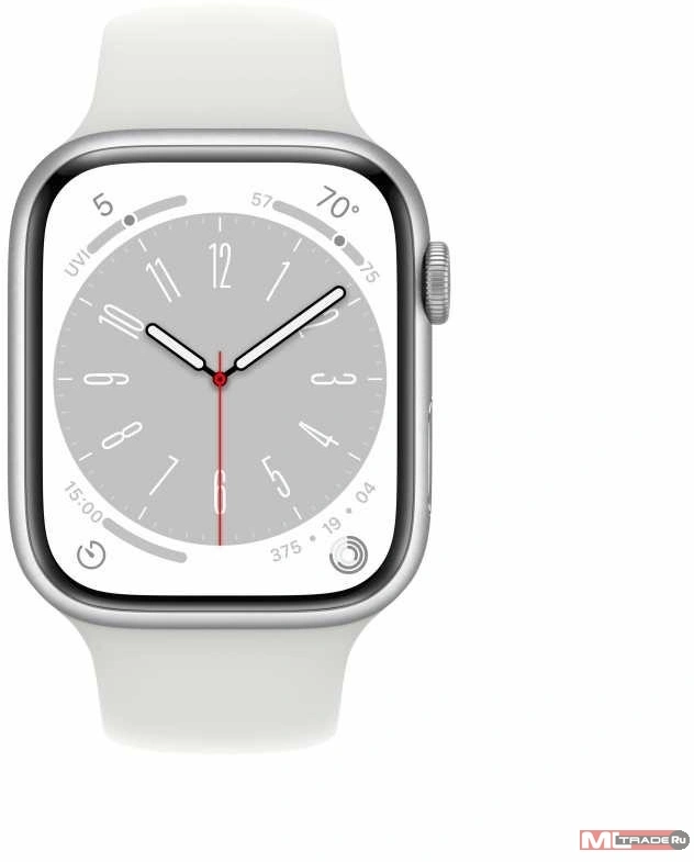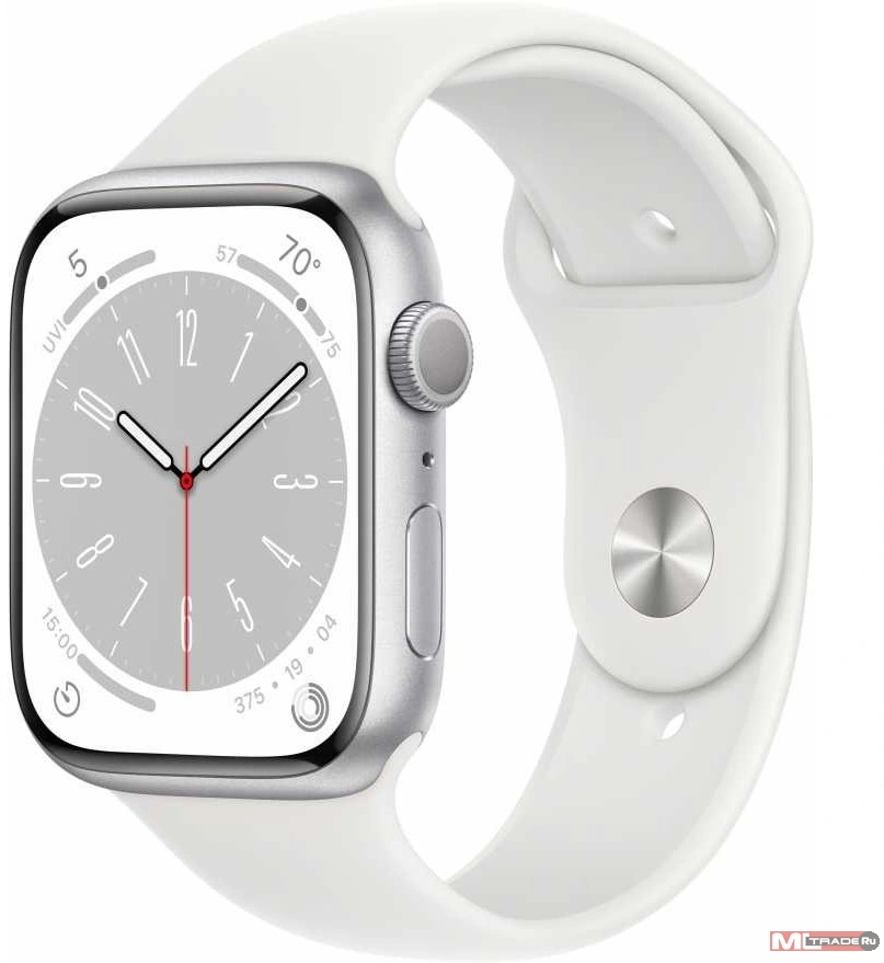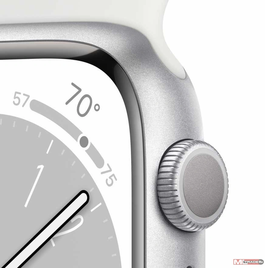 Смарт-часы Apple Watch Series 8 А2771 45мм OLED корп.серебристый рем.белый разм.брасл.:M/L (MP6Q3LL/A)