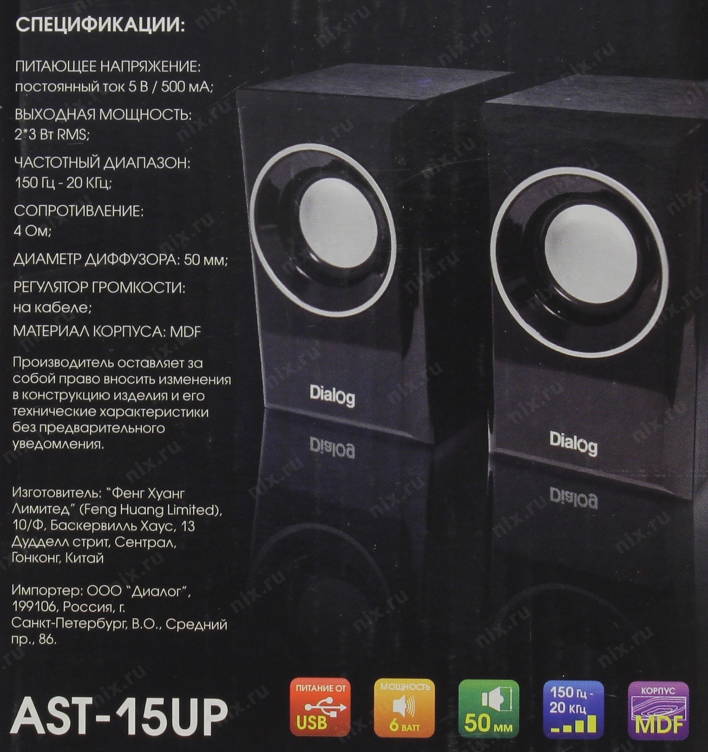 Колонки Dialog AST-15UP Black (2*3W RMS, активные) [AST-15UPBlack]