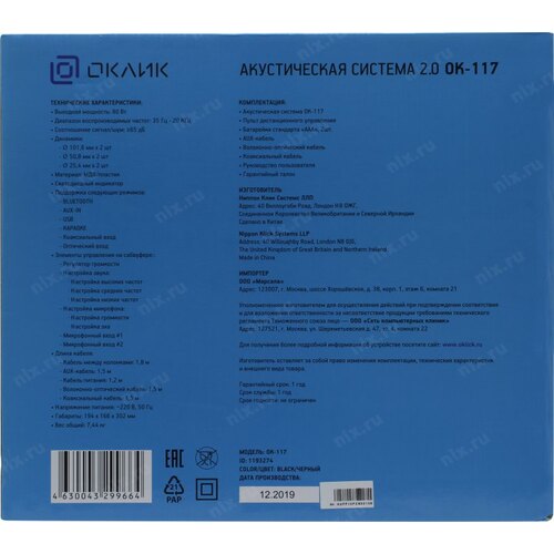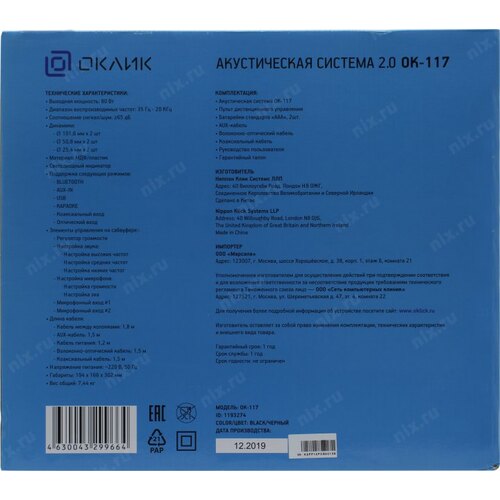 Колонки Оклик OK-117 BT 2.0 черный 80Вт BT OKLICK 1193274