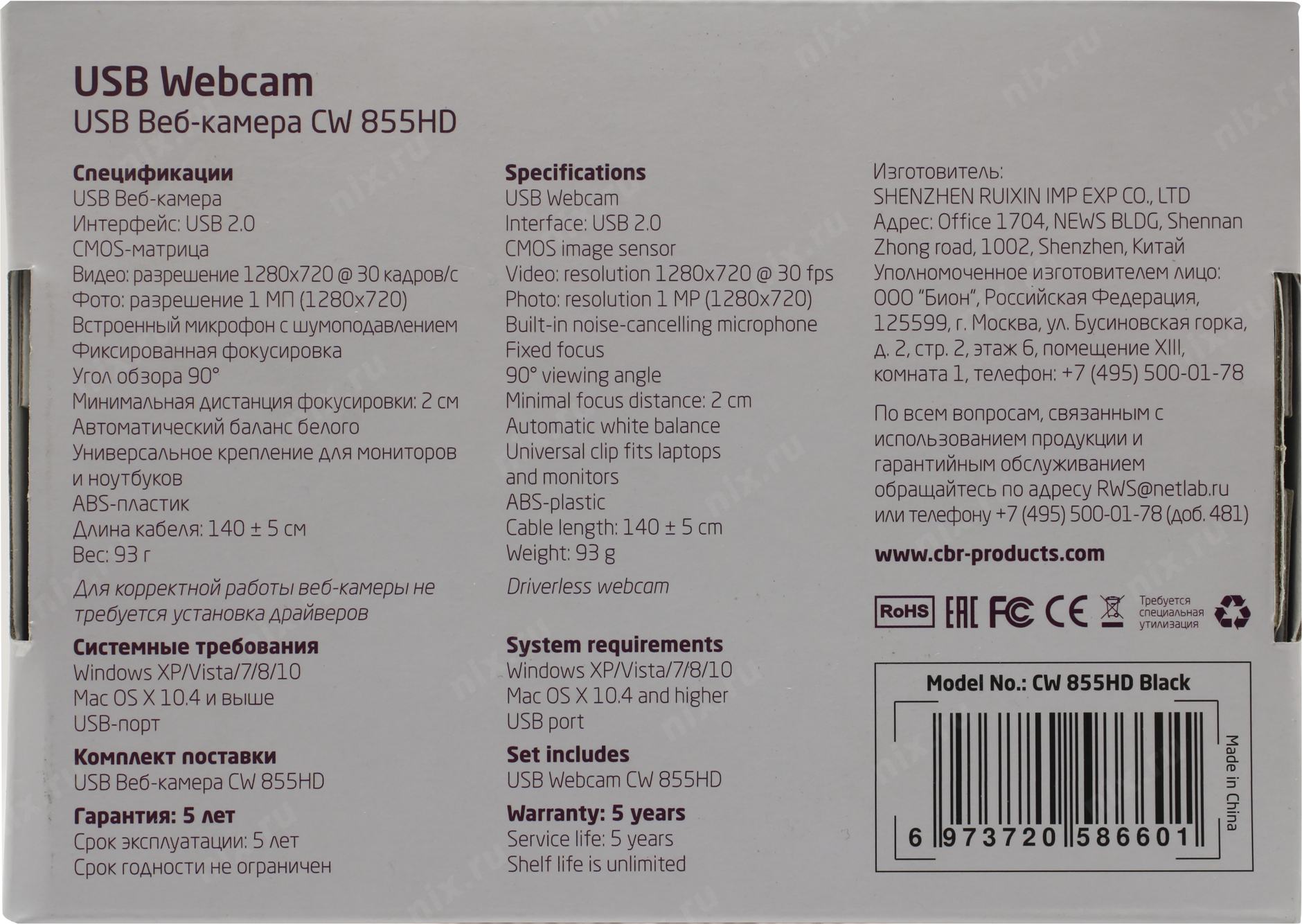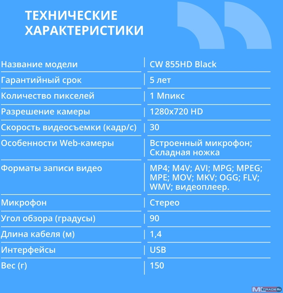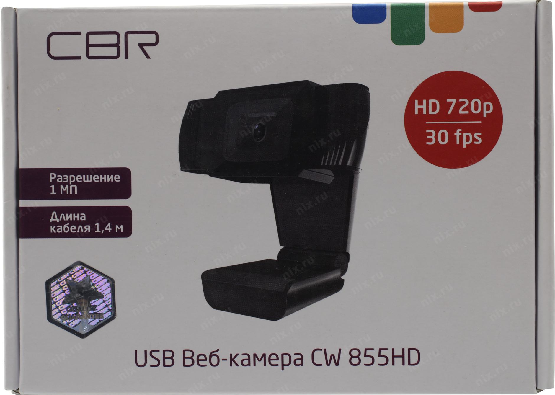 Цифровая камера CBR CW 855HD Black, Веб-камера с матрицей 1 МП, разрешение видео 1280х720, USB 2.0, встроенный микрофон с шумоподавлением, фикс.фокус, крепление на мониторе, длина кабеля 1,4 м, цвет чёрный [CW855HDBlack]
