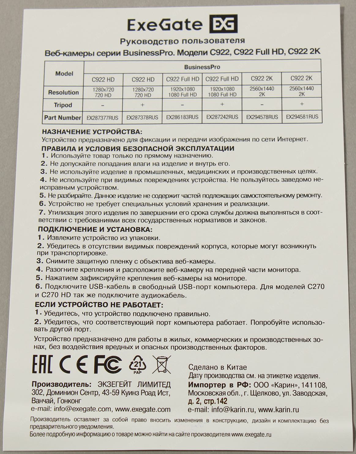 Веб-камера ExeGate BusinessPro C922 2K предназначена для удовлетворения стандартных потребностей бизнес-пользователей, предъявляющих высокие требования к качеству изображения, подходит для использования как в бытовых целях, так и для использования в бизнесе.