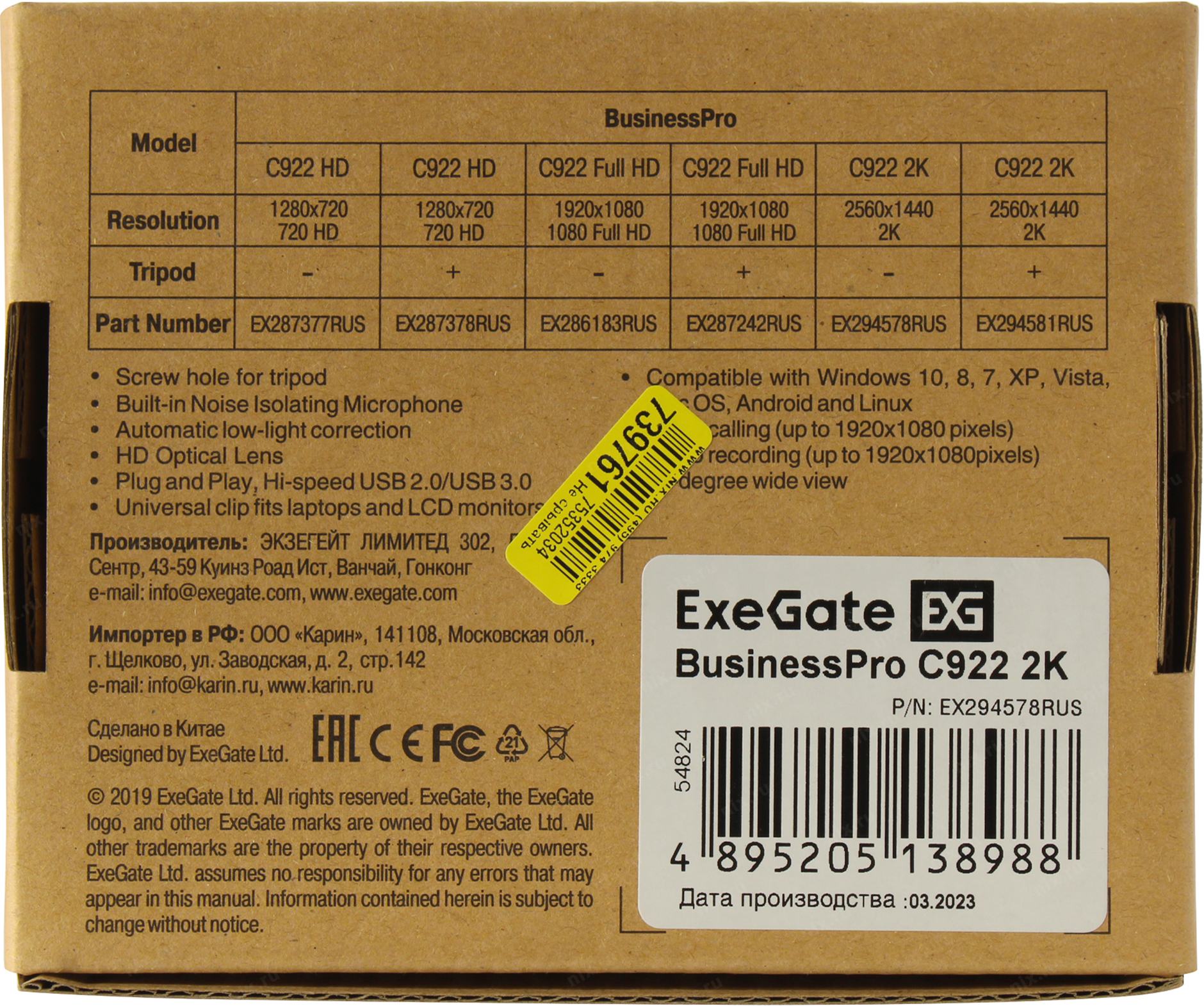 Веб камеры Exegate EX294578RUS Веб-камера ExeGate BusinessPro C922 2K