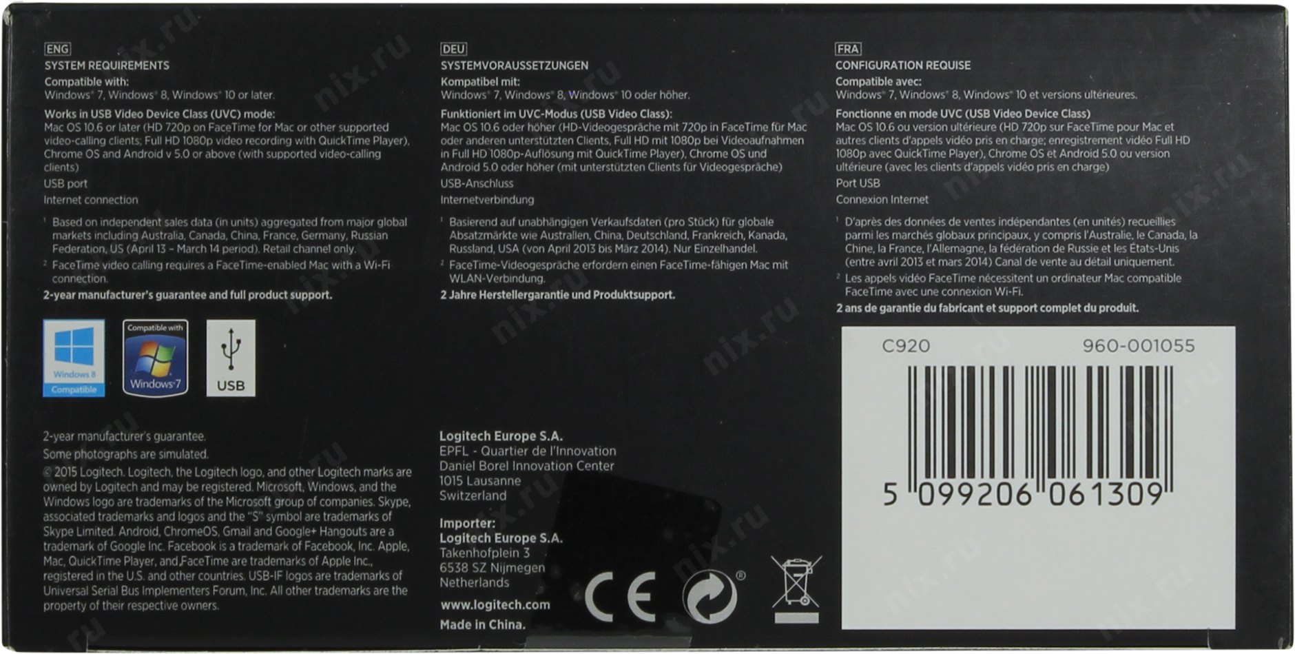 Цифровая камера 960-000998 Logitech HD Pro Webcam C920 ( USB 2.0, 1920*1080, 2Mpix foto, Mic, Black)