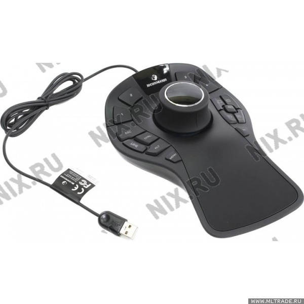 Дополнительный манипулятор для CAD систем. Используется совместно с обычной мышью, позволяет выполнять панаромирование, вращение и масштабирование модели при помощи основного манипулятора. В дополнение к этому, на основании размещено множество программируемых кнопок для быстрого доступа к часто используемым функциям.