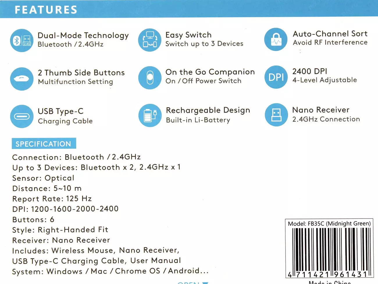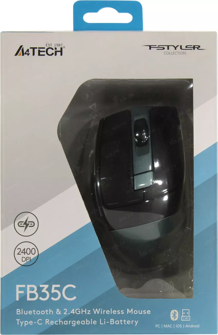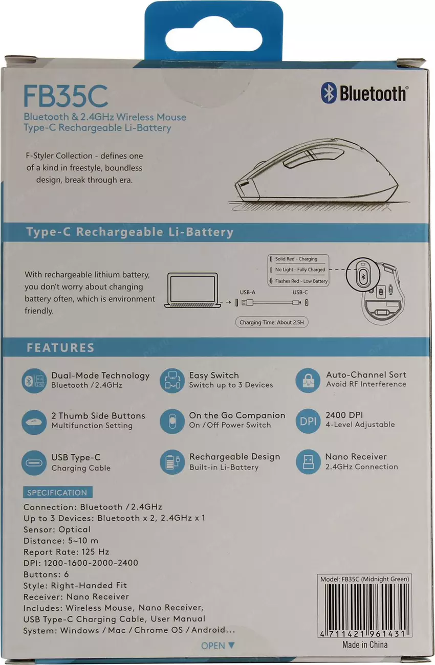 Мышь A4Tech Fstyler FB35C зеленый/ черный оптическая 2000dpi беспров. BT/ Radio USB 6but (FB35C MIDNIGHT GREEN)