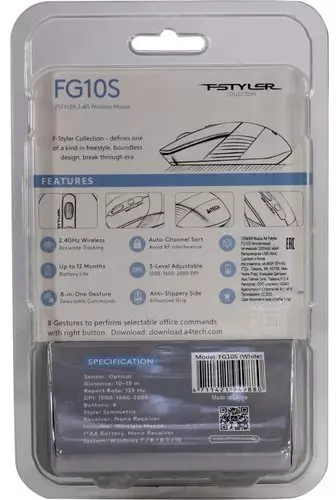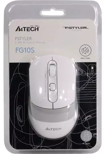 Мышь A4Tech Fstyler FG10S белый/ серый оптическая 2000dpi silent беспров. USB для ноутбука 4but (FG10S WHITE)