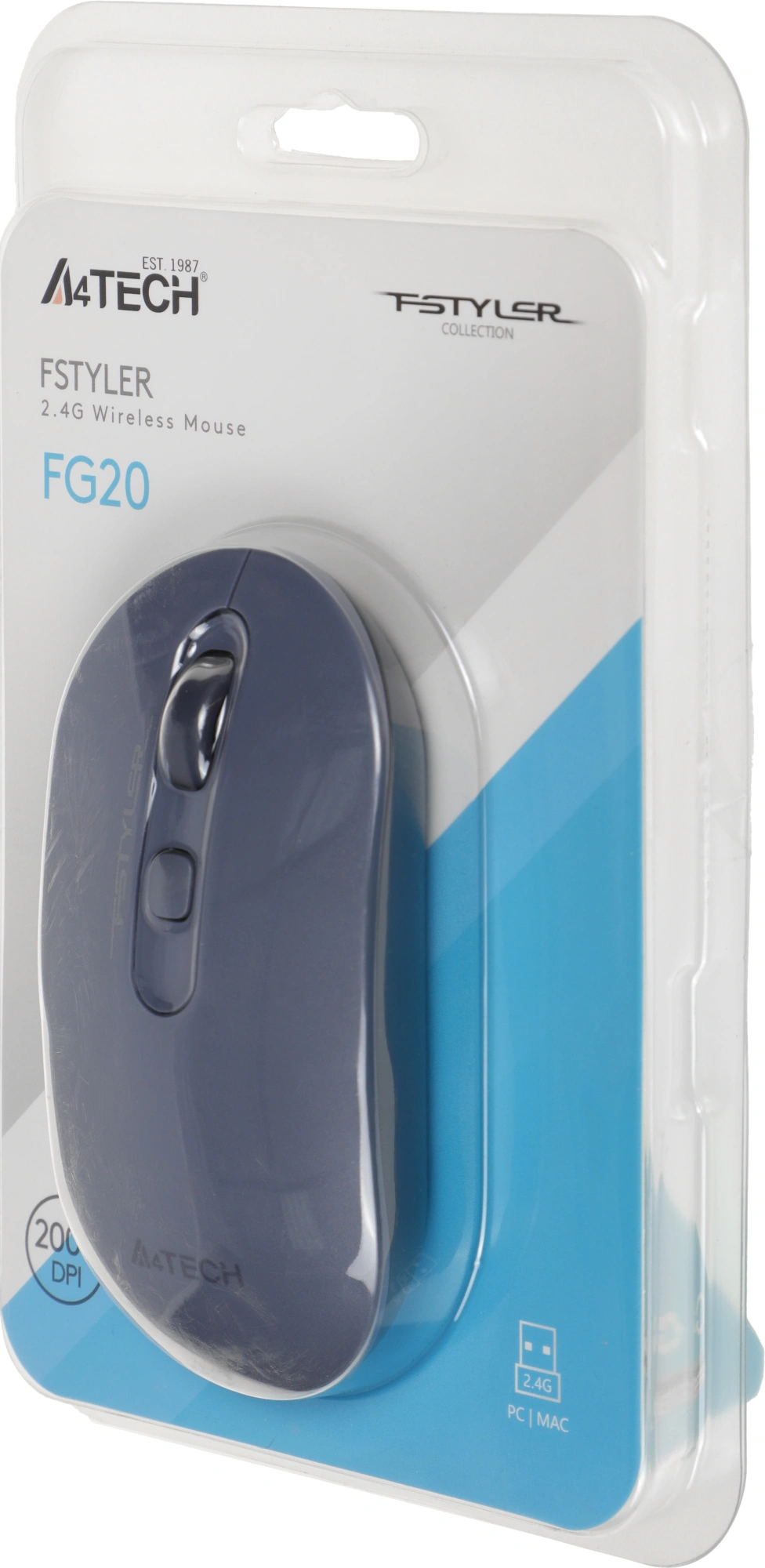 Мышь A4Tech Fstyler FG20 пепельный/ синий оптическая 2000dpi беспров. USB для ноутбука 4but (FG20 ASH BLUE) FG20 ASH BLUE